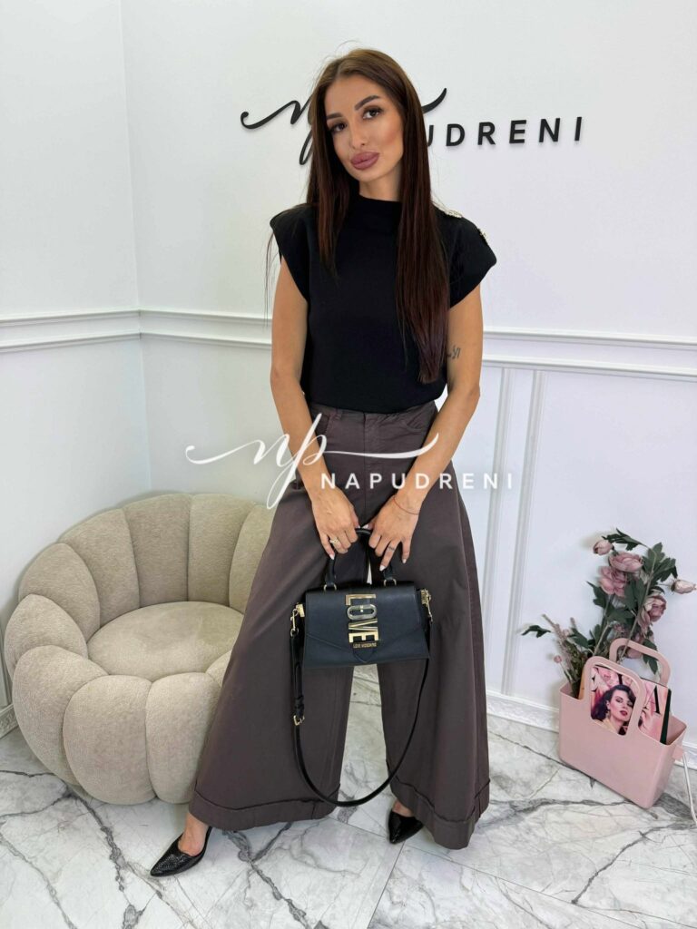 Блуза от фино плетиво със златисти елементи в черен цвят – код Bi9982