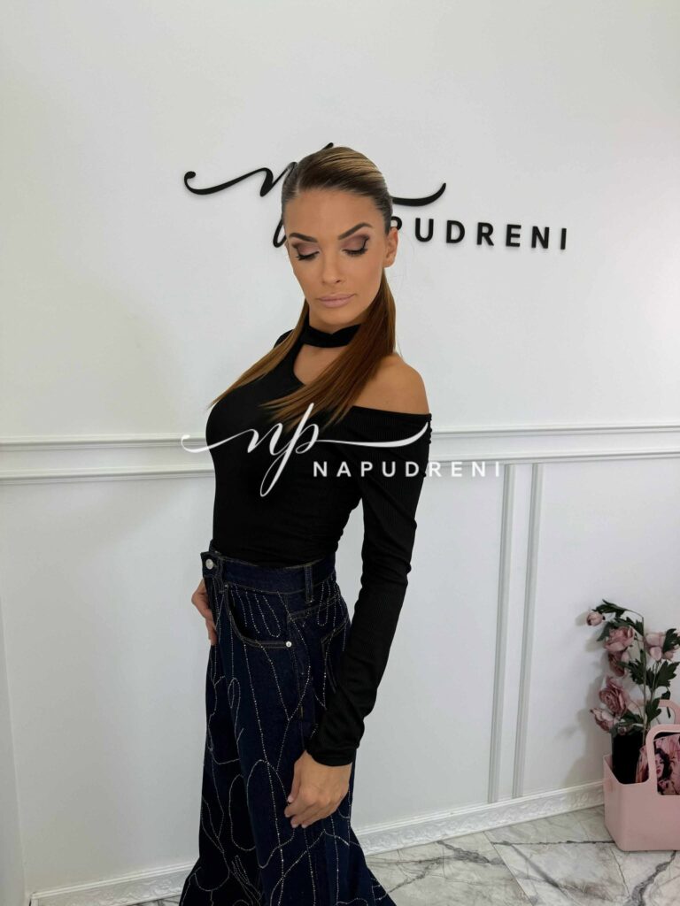 Блуза с асиметрично деколте в черен цвят – код BL9952