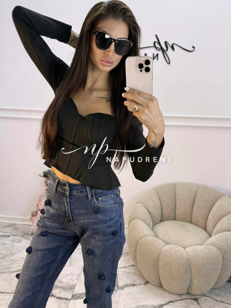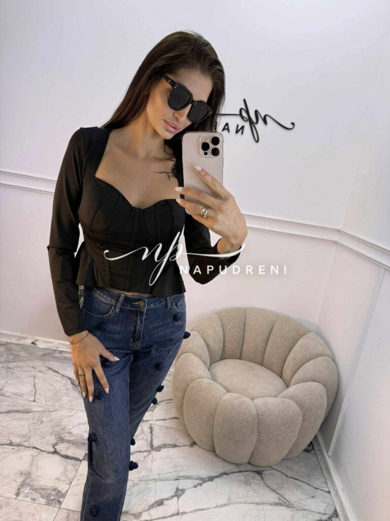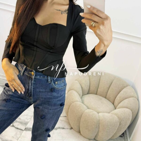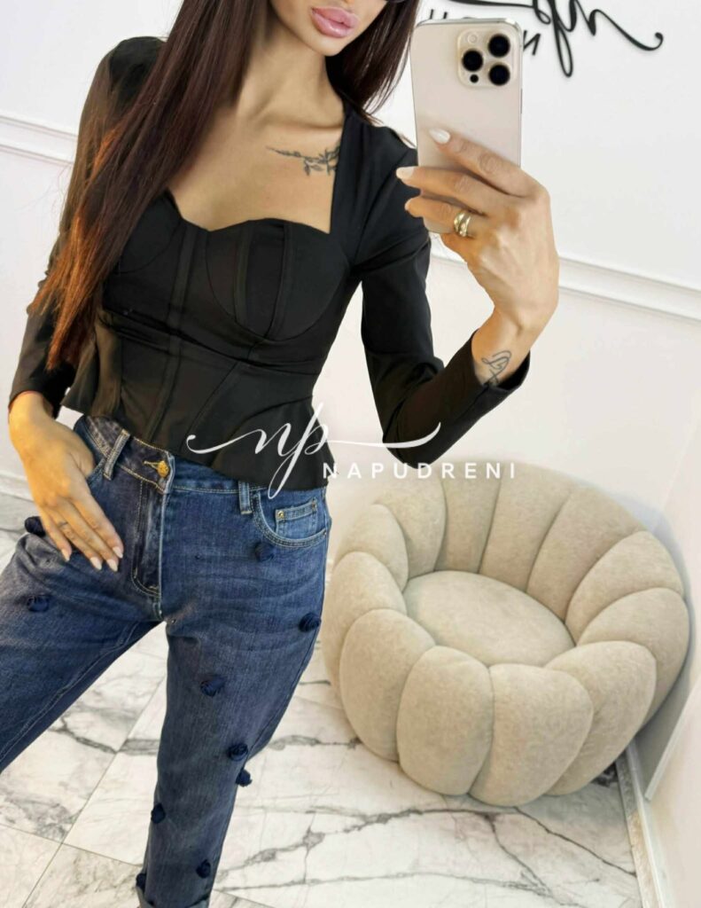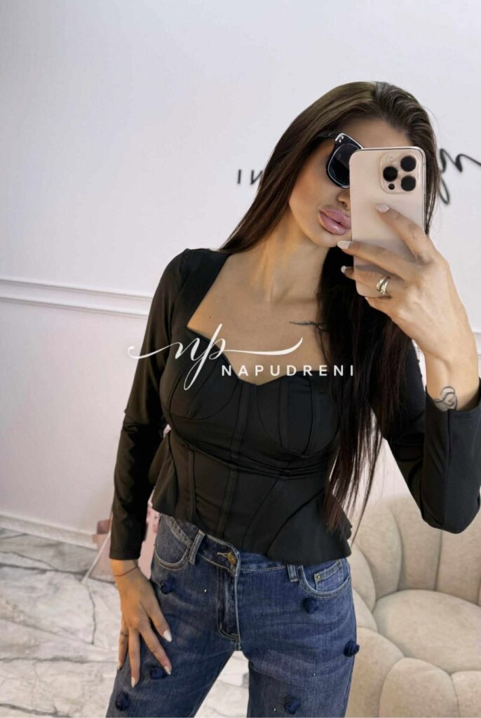 Блуза с чашки “PUSH UP“ и корсетен ефект в черен цвят – код Bi9979
