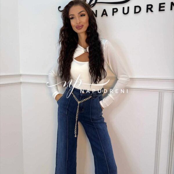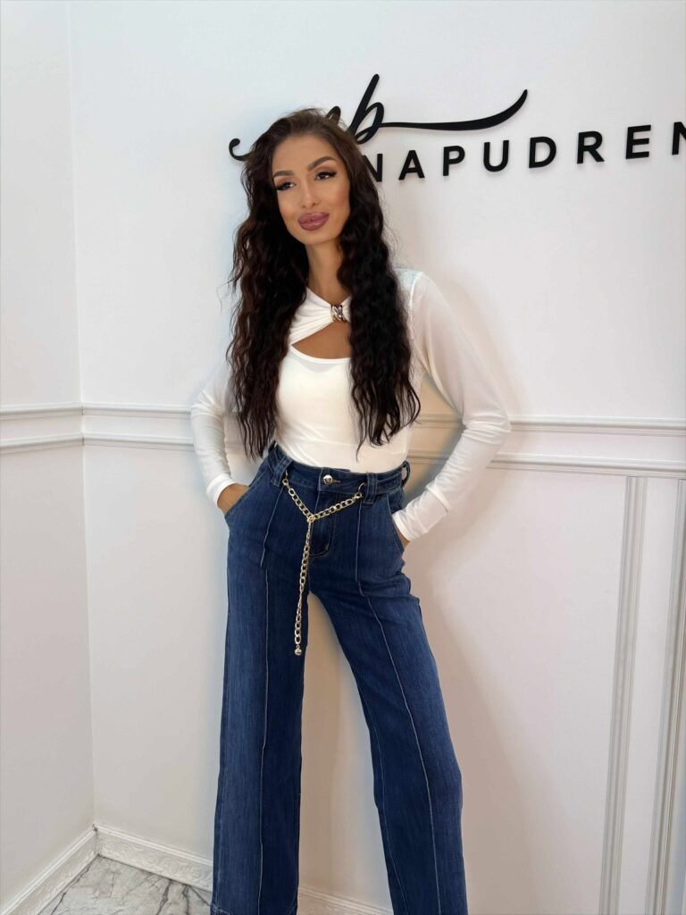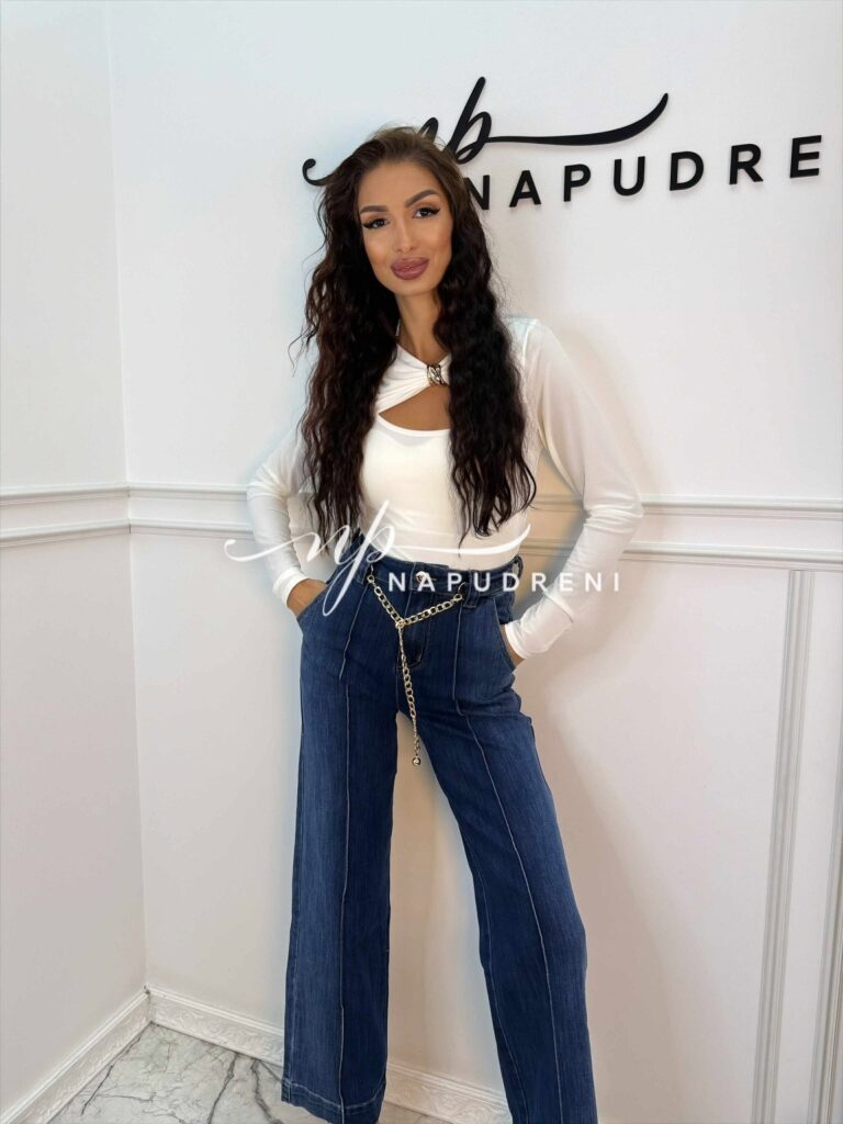 Блуза с дълъг ръкав и златиста декорация в бял цвят – код G9836