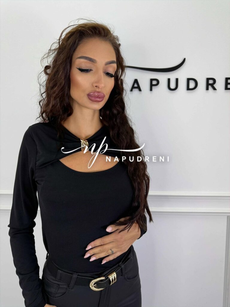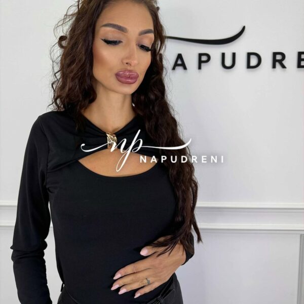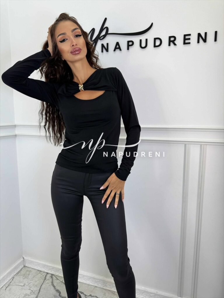 Блуза с дълъг ръкав и златиста декорация в черен цвят – код G9835