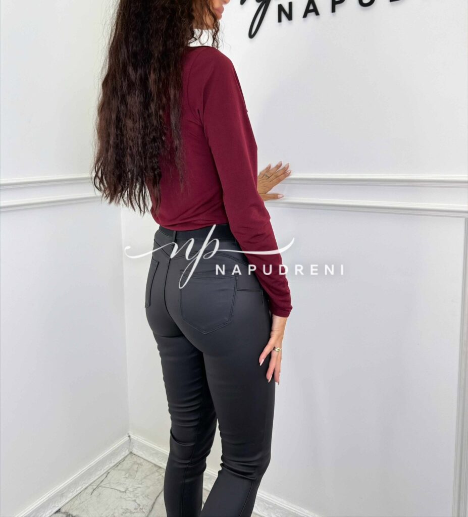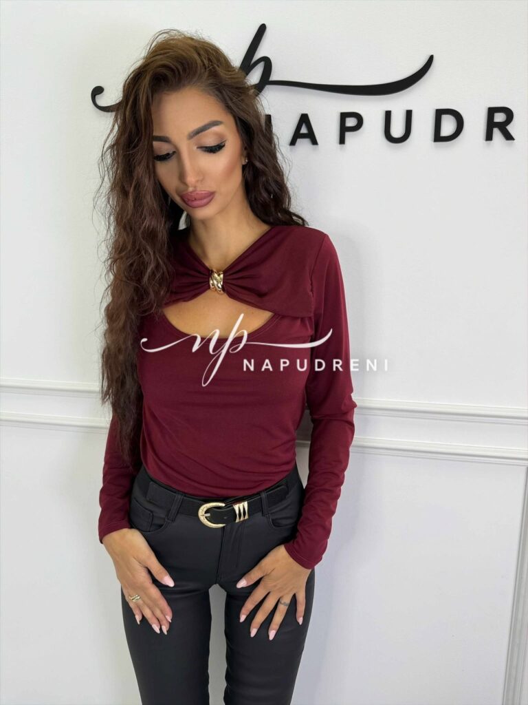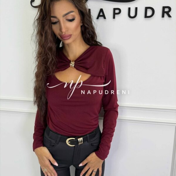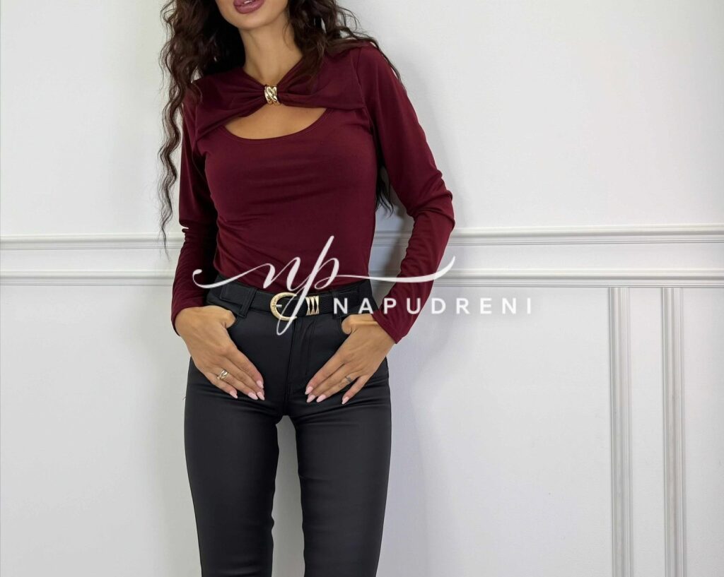 Блуза с дълъг ръкав и златиста декорация в цвят бордо – код G9834