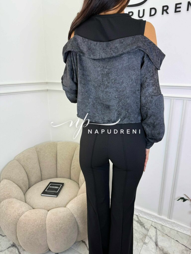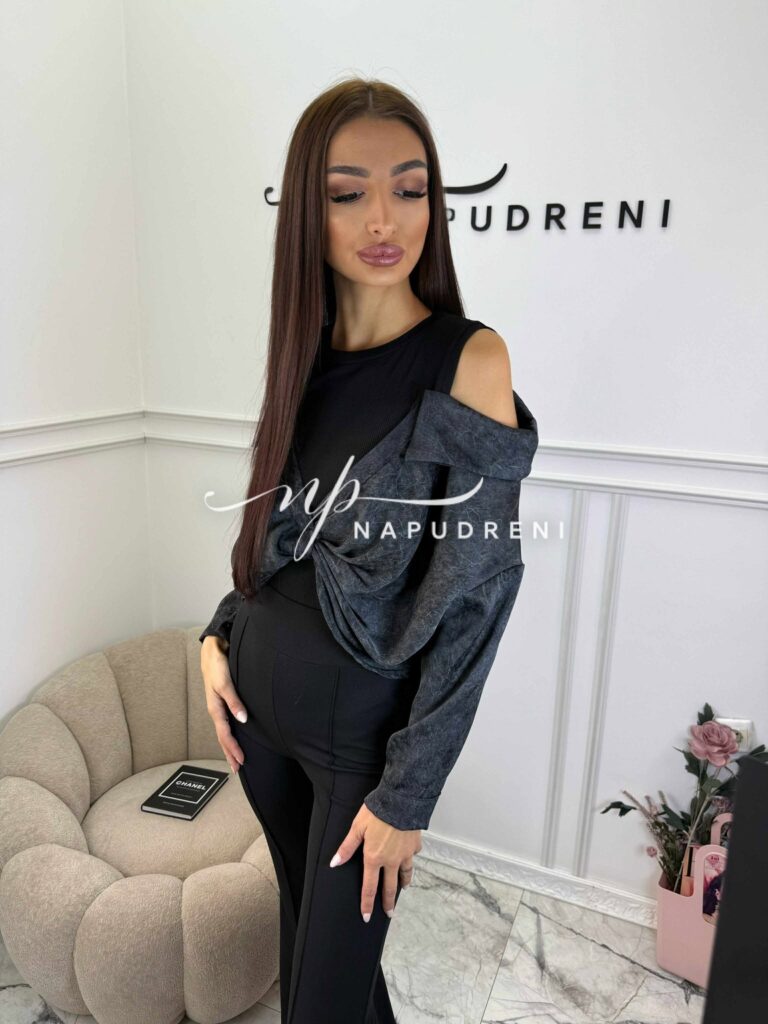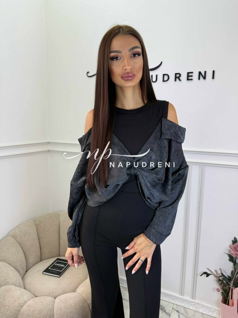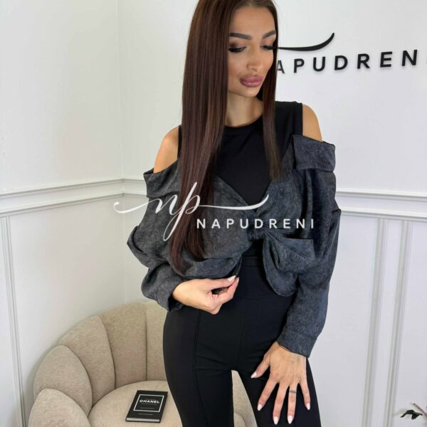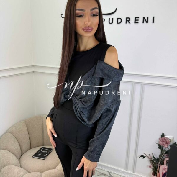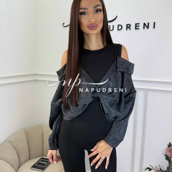 Блуза с паднали рамене “SOFT COMBO“ в тъмносив цвят – код BL10169