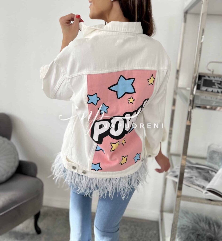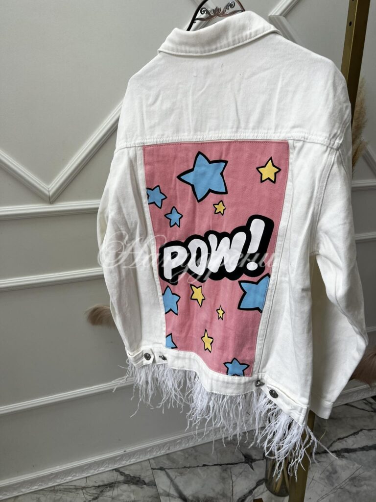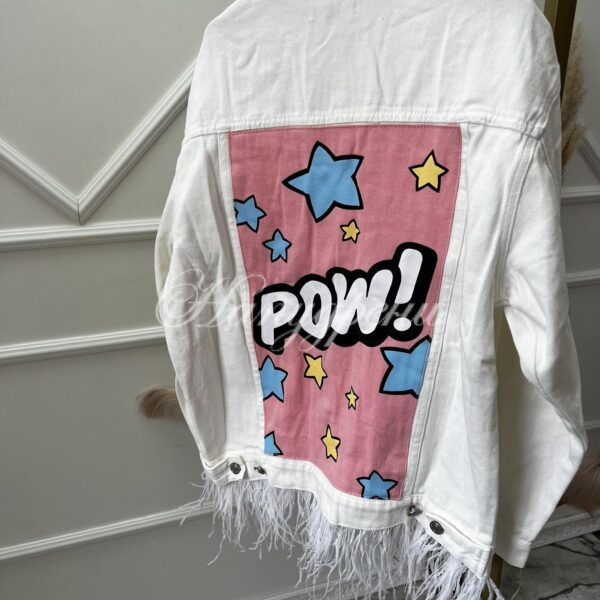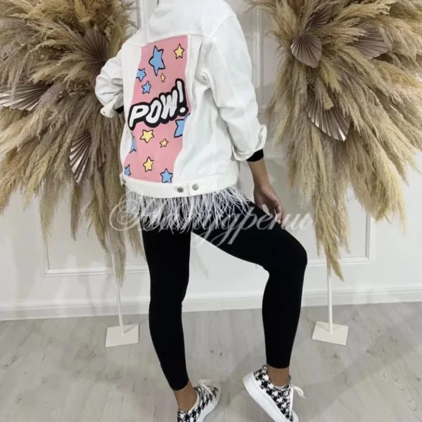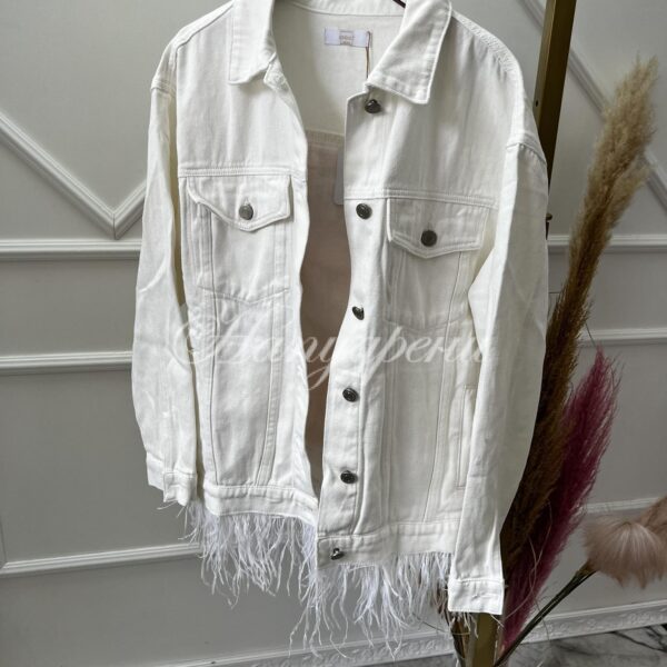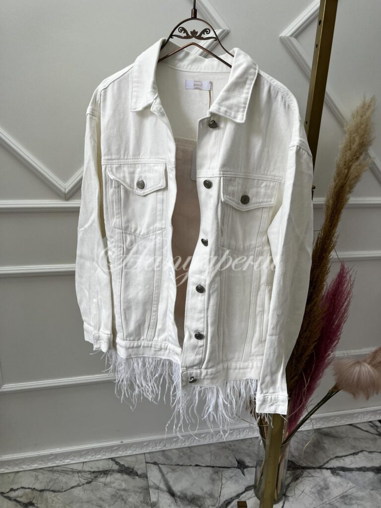 Home » Магазин » Бяло дънково яке с ефектна апликация и пера – код 5722