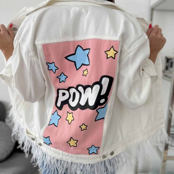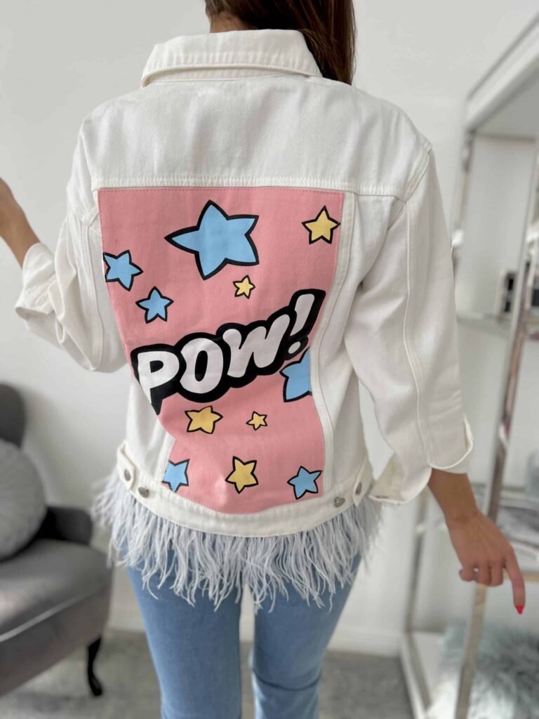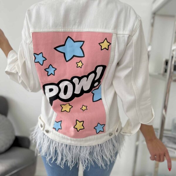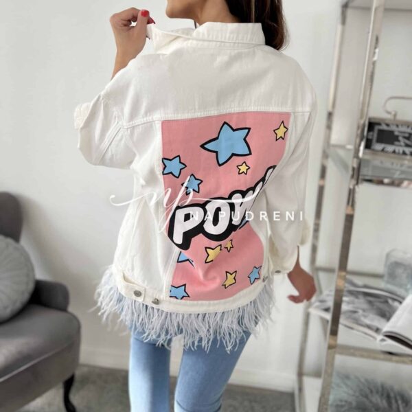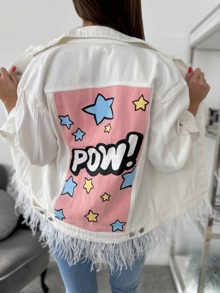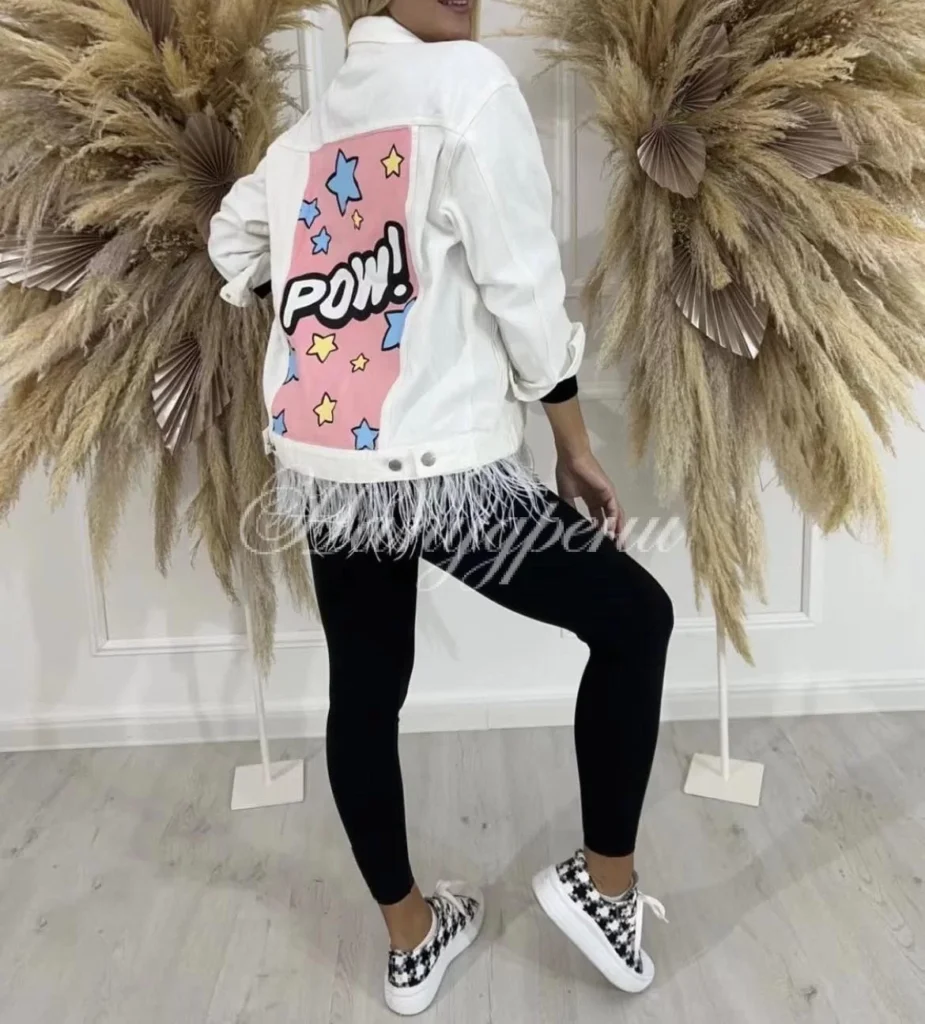 Home » Магазин » Бяло дънково яке с ефектна апликация и пера – код 5722