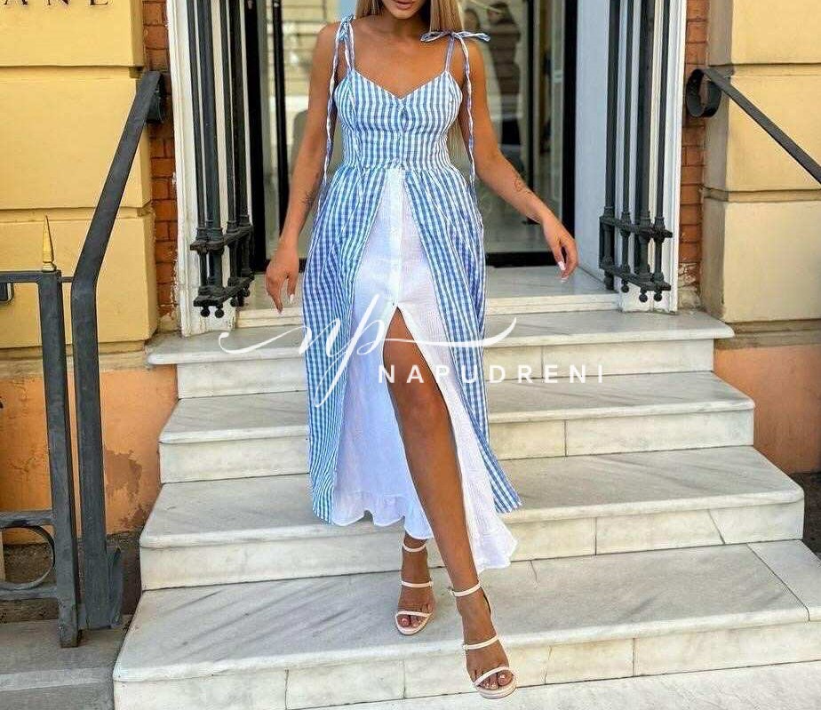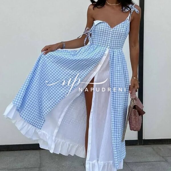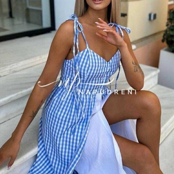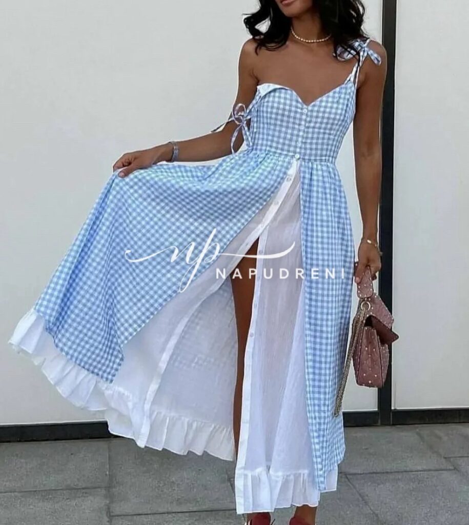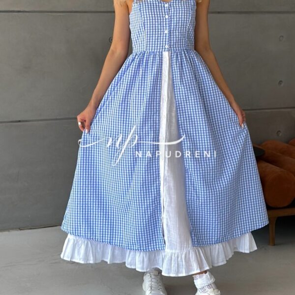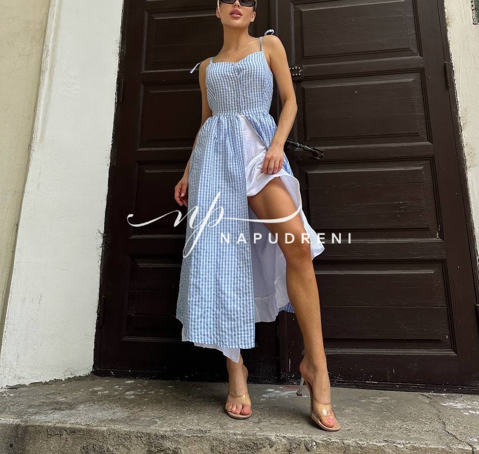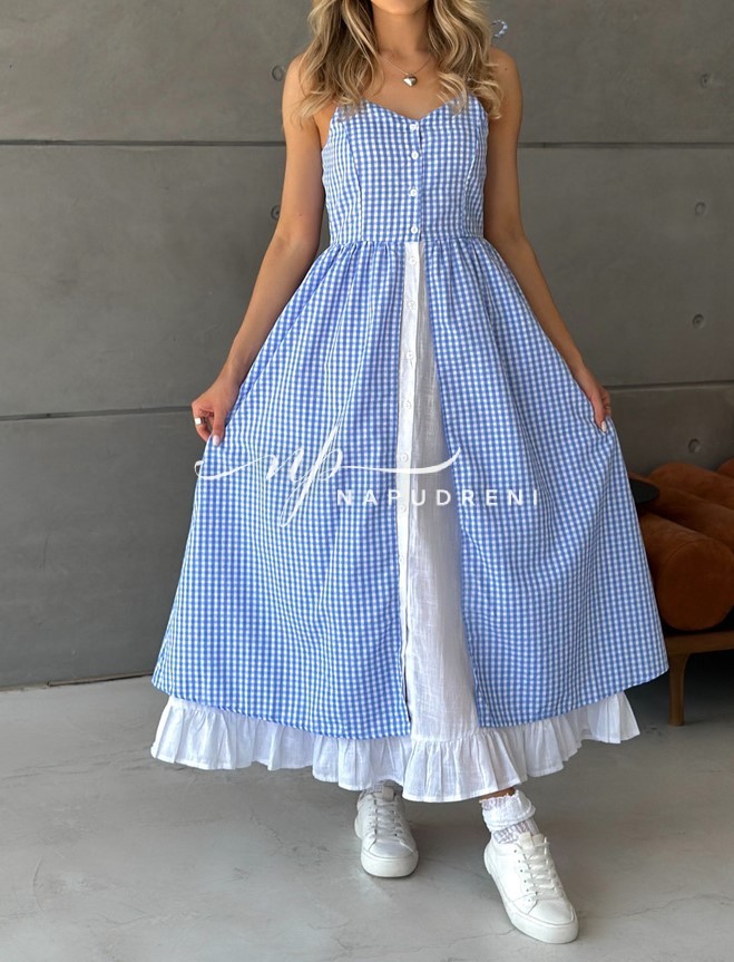 Дълга карирана рокля “BELLA VISTA“ в светлосин цвят – код BL9560