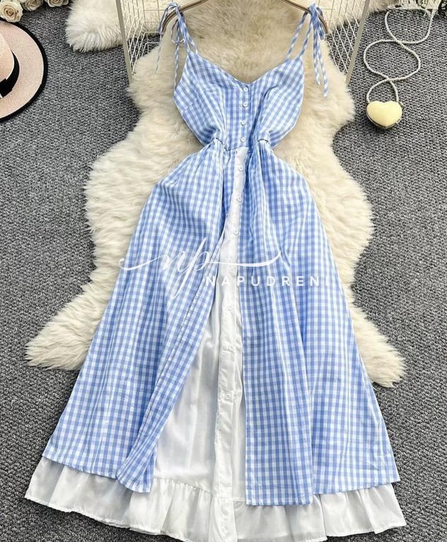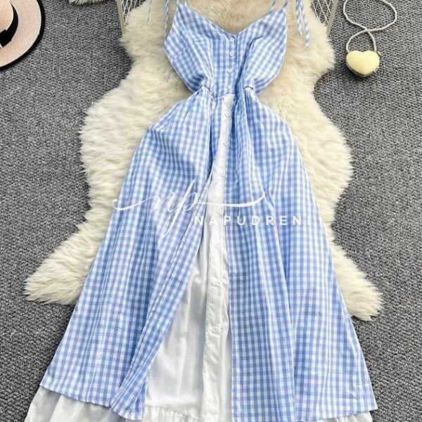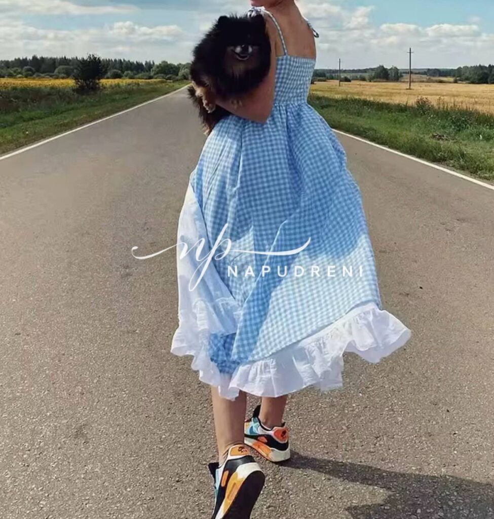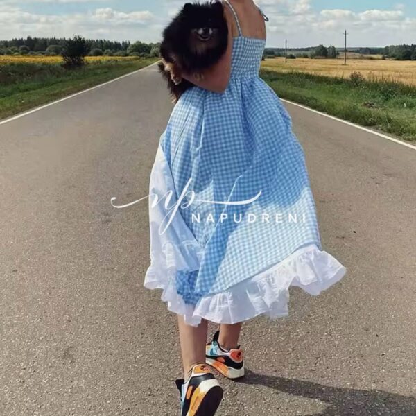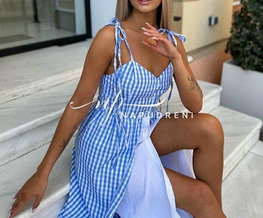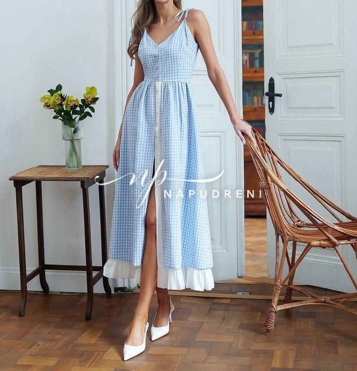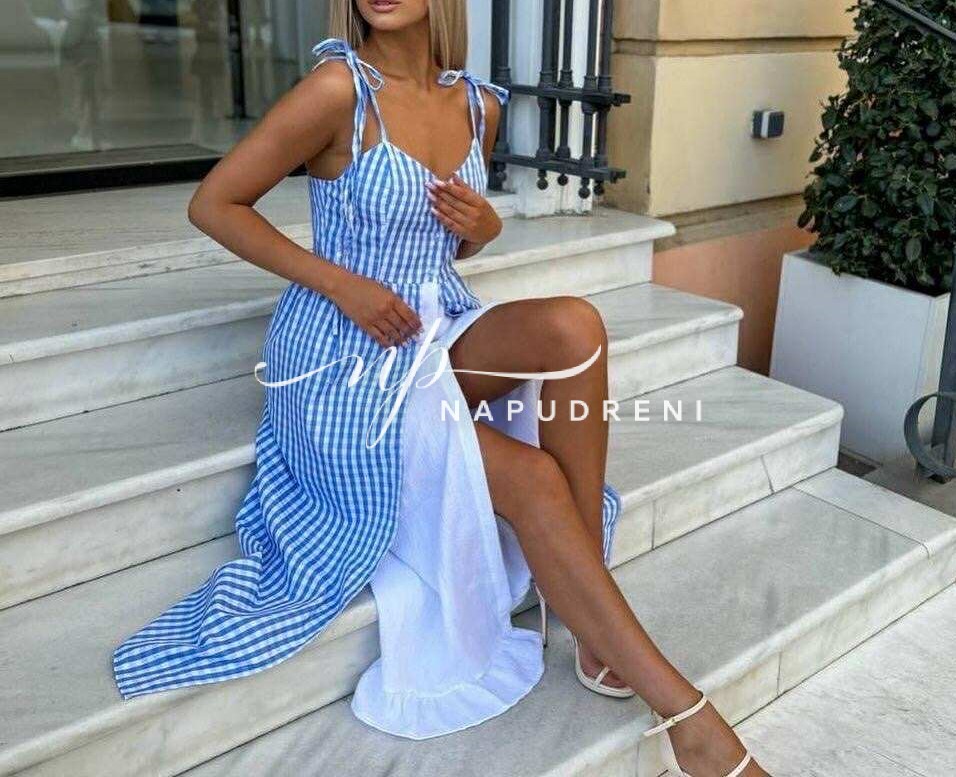 Дълга карирана рокля “BELLA VISTA“ в светлосин цвят – код BL9560