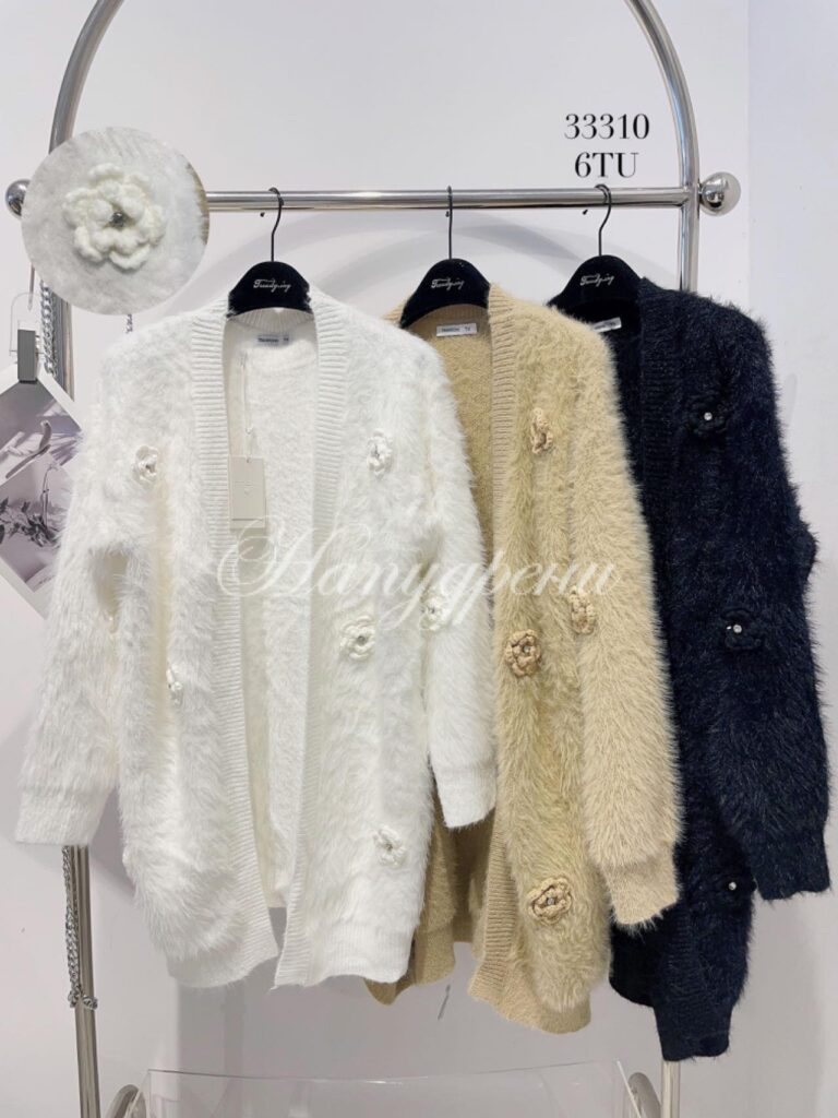 Home » Магазин » Дълга мохерна жилетка с цветя в бял цвят – код 5873