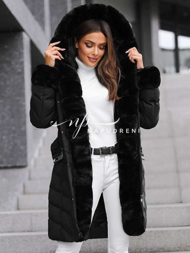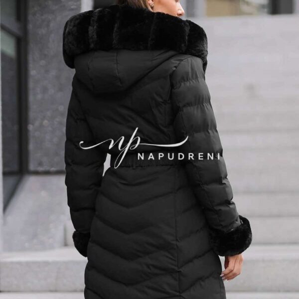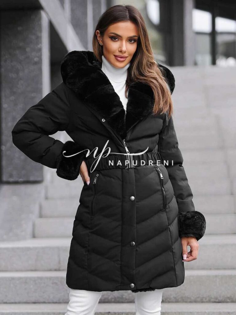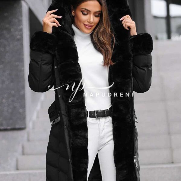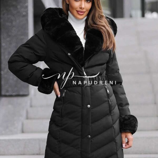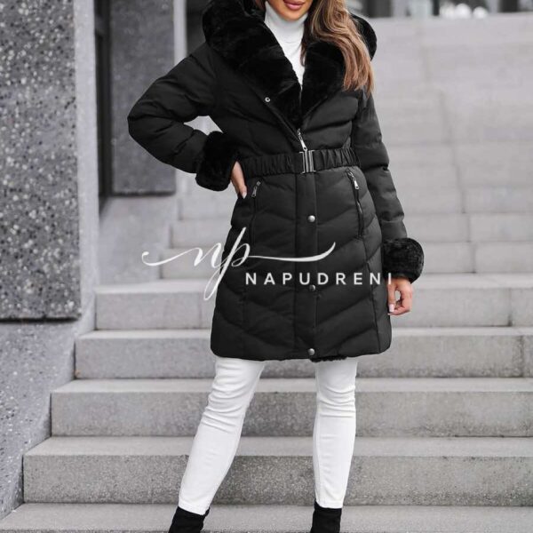 Дълга парка с колан в черен цвят – код 8329