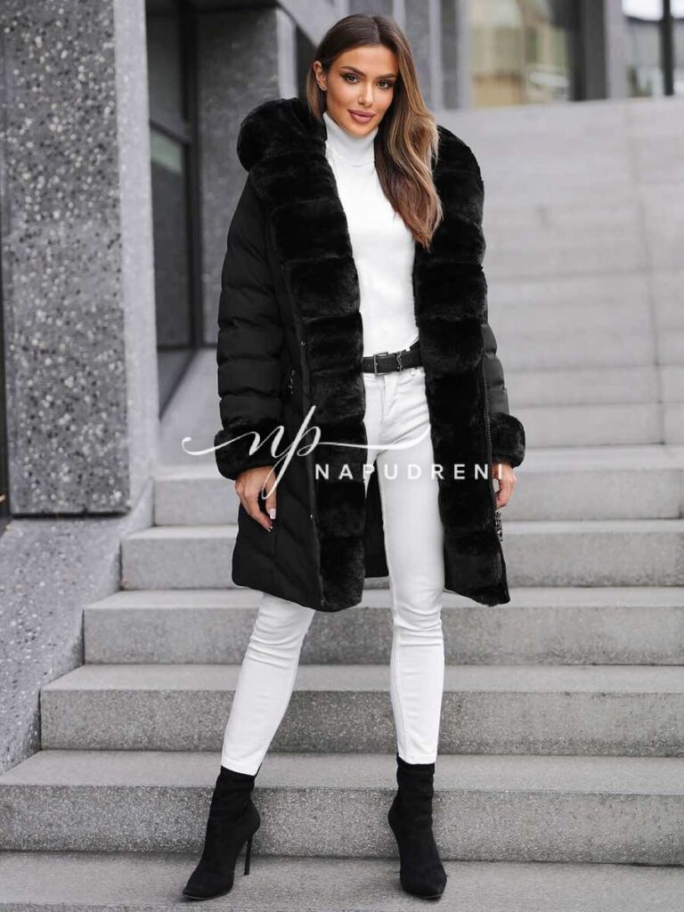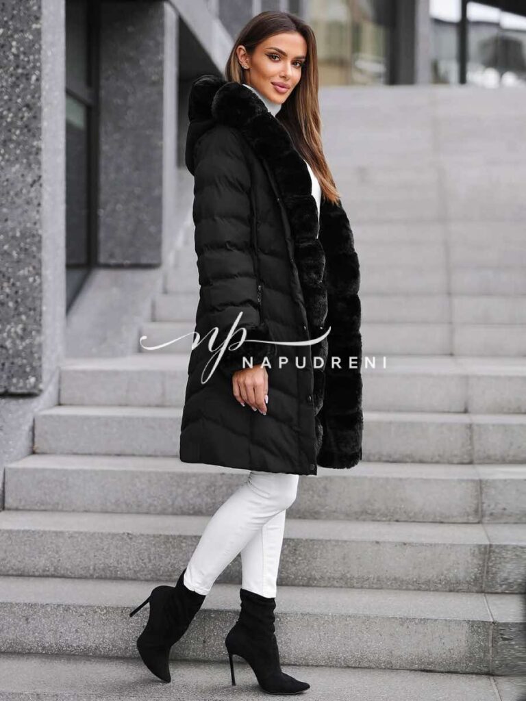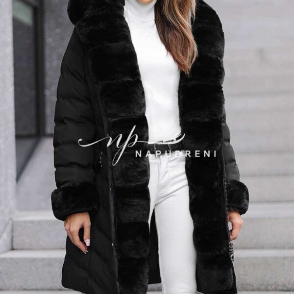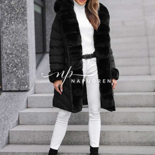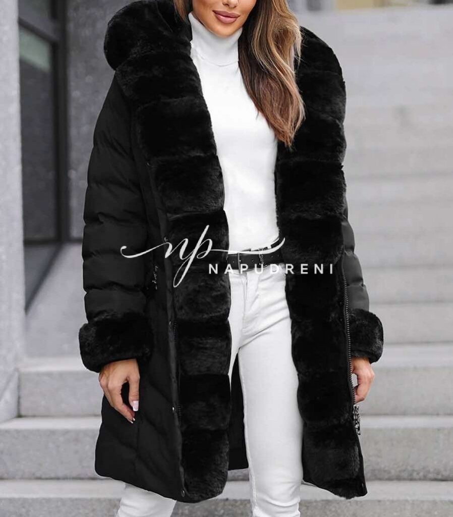 Дълга парка с колан в черен цвят – код 8329