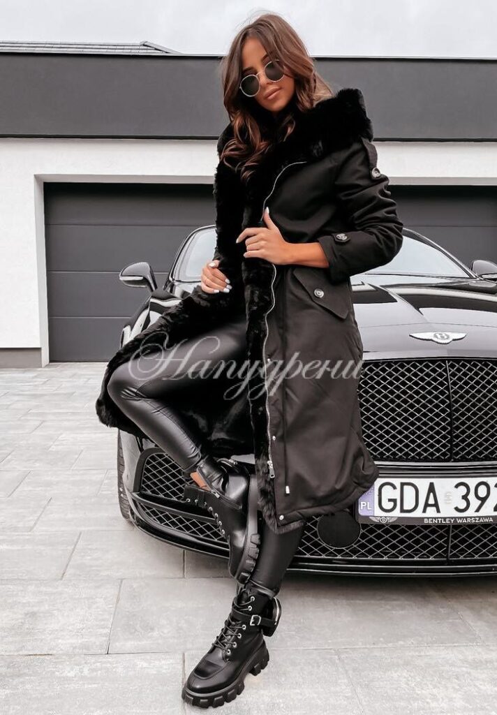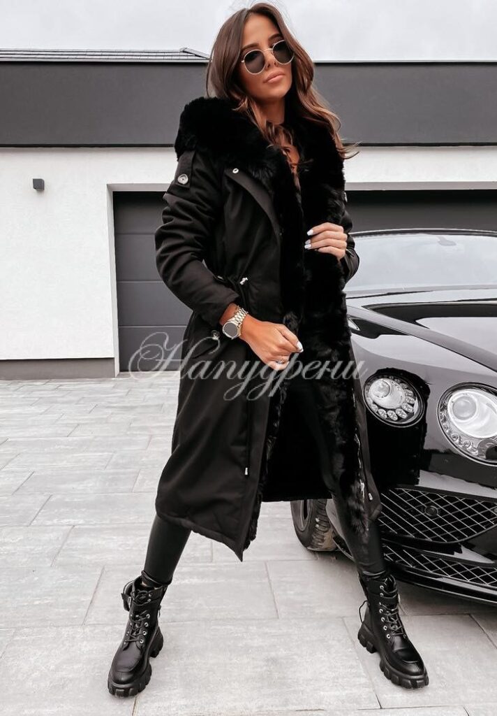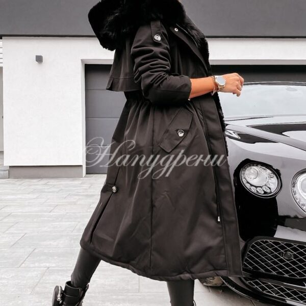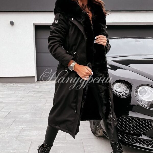 Дълга парка с пух в черен цвят – код 3717