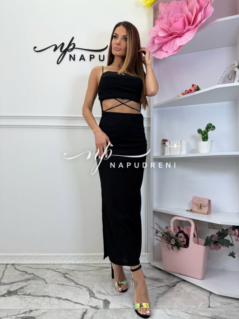 Дълга рокля с цепка “ADELLINA“ в черен цвят – код BL9289