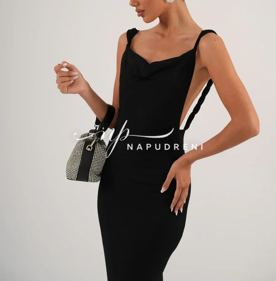 • Дълга рокля с гол гръб в черен цвят - код BL9505