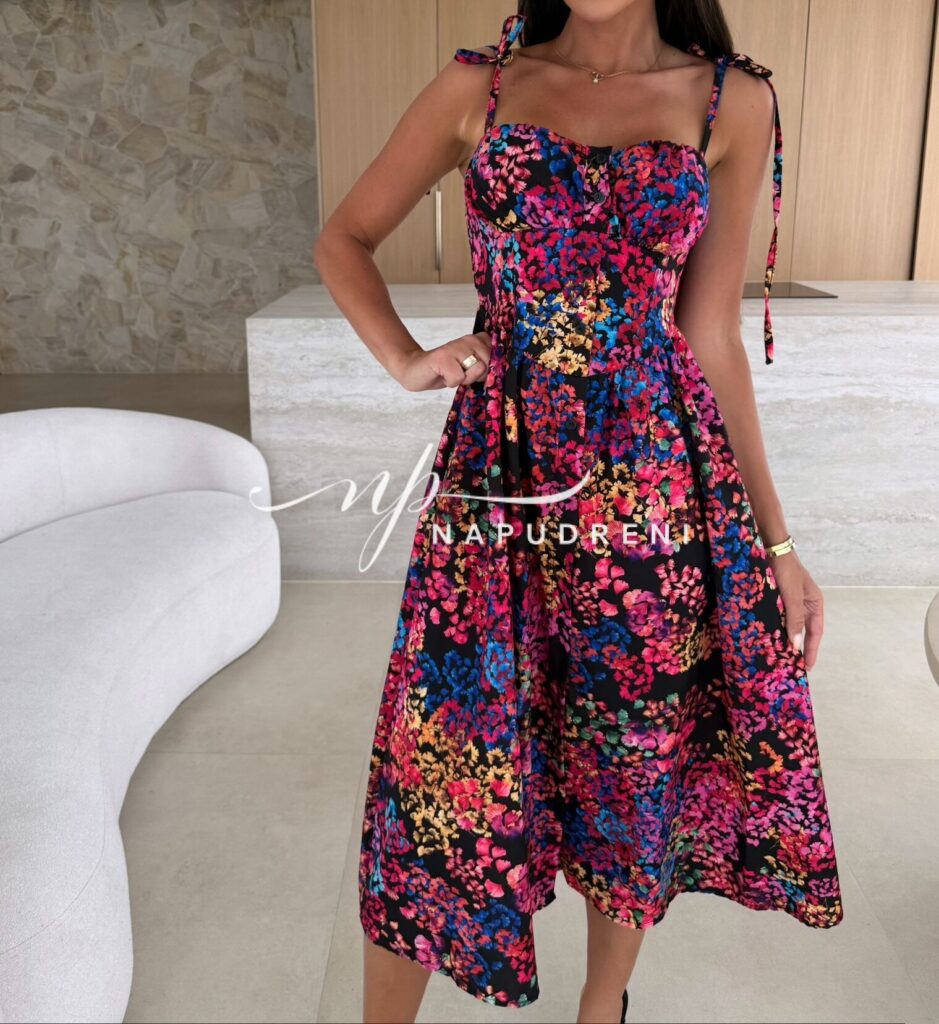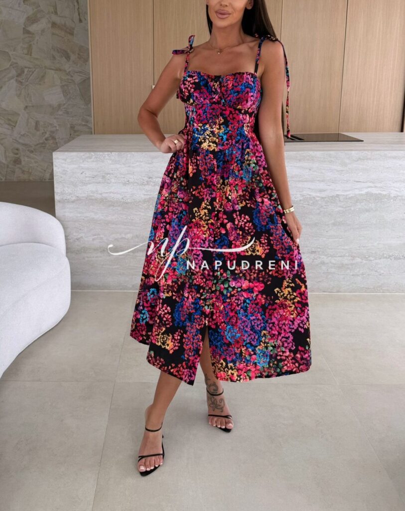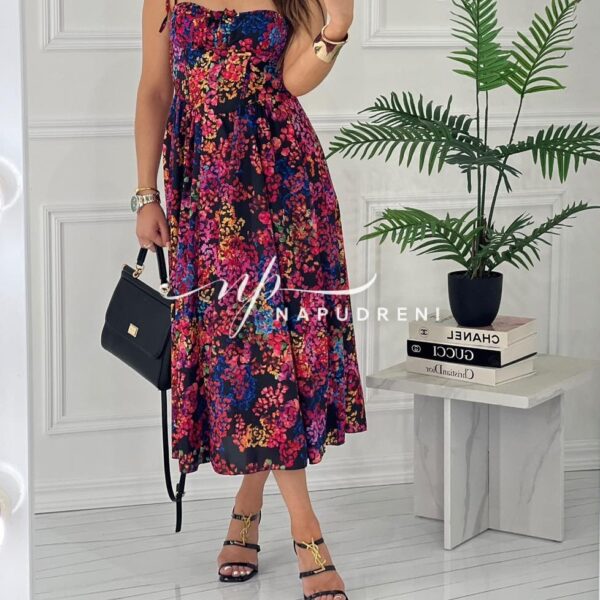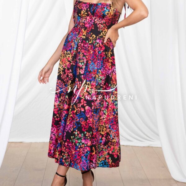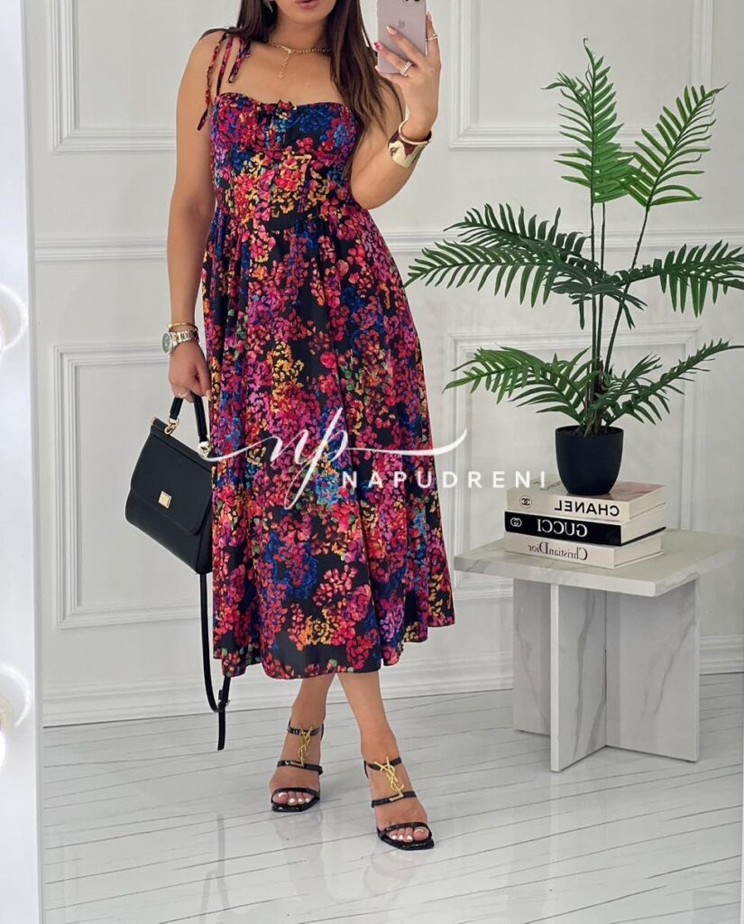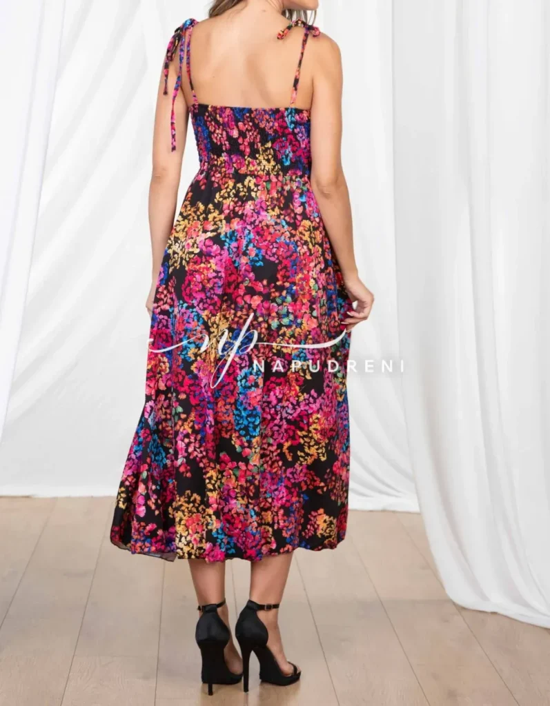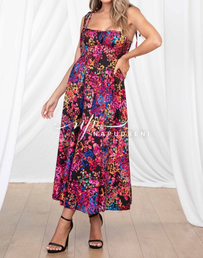 • Дълга рокля с презрамки ''BORISSA'' с флорален принт в ярки цветове - код G9269
