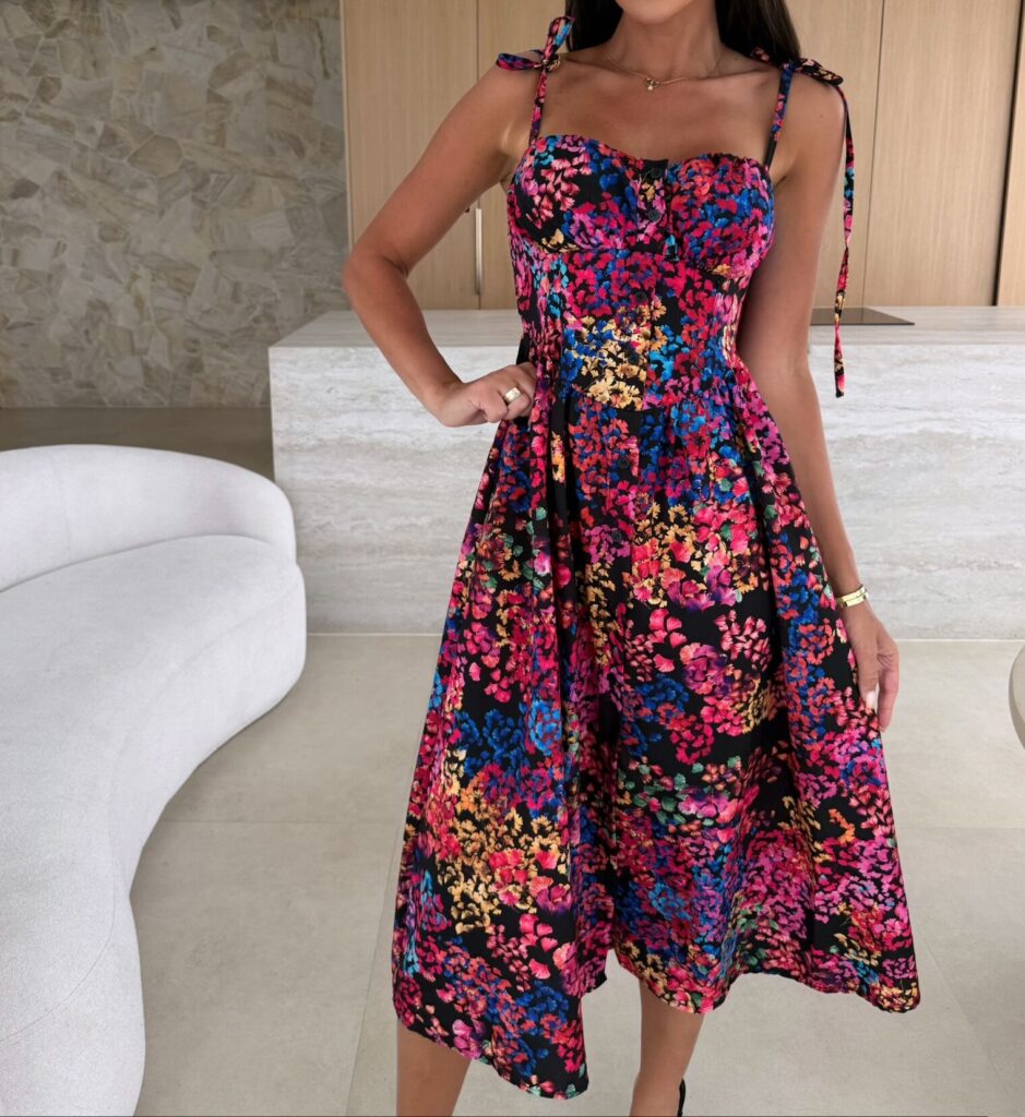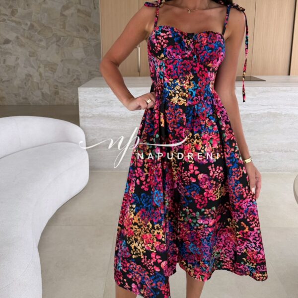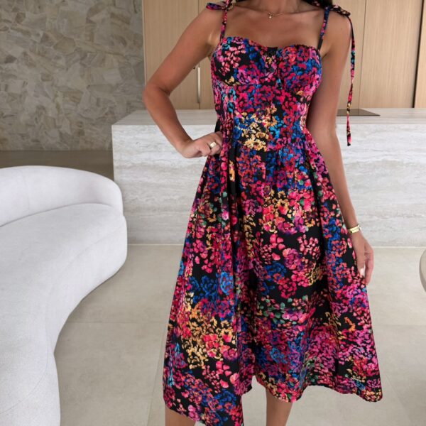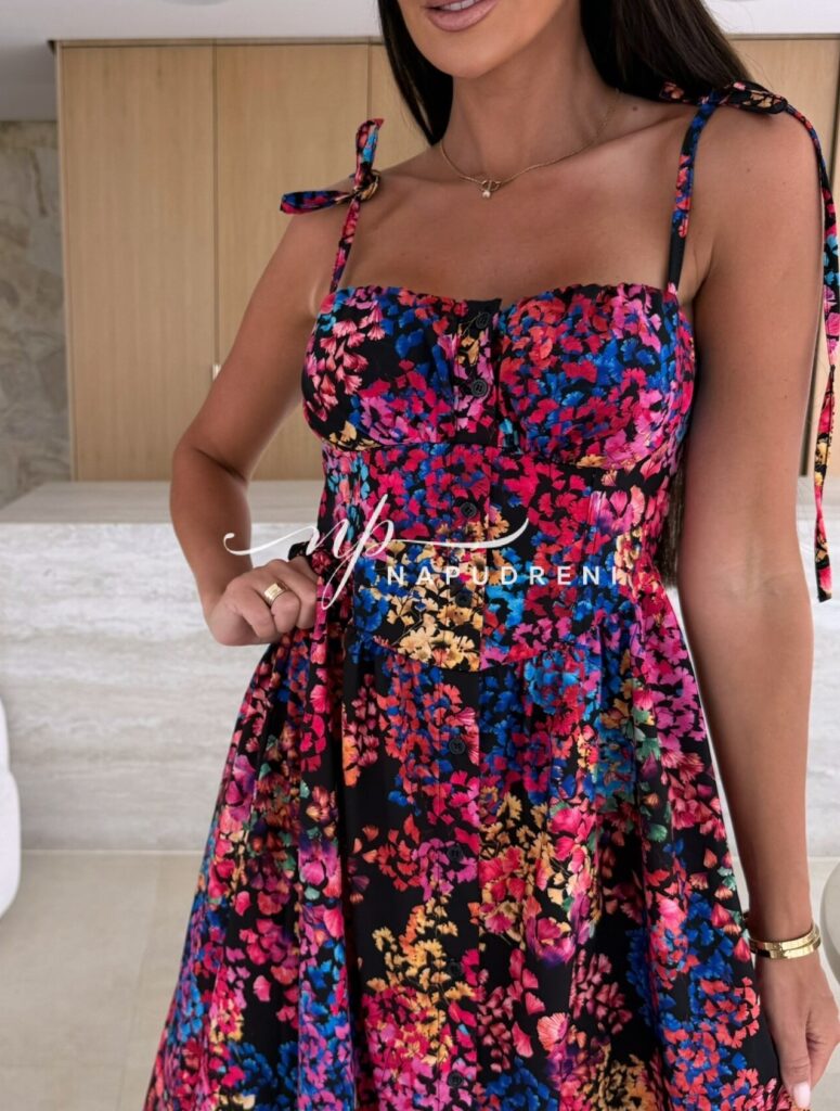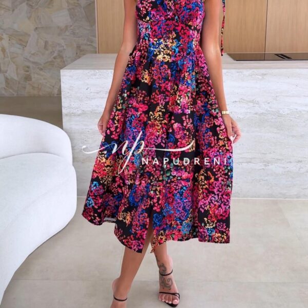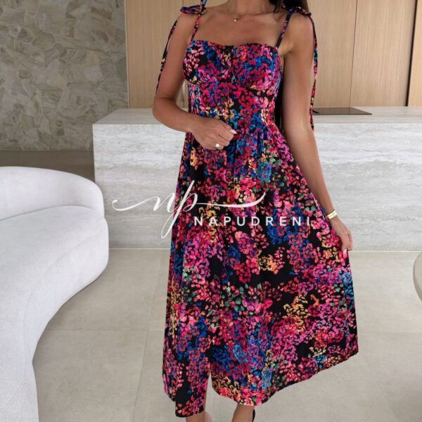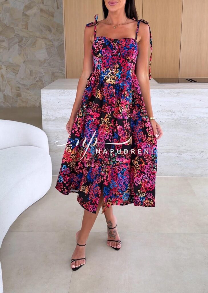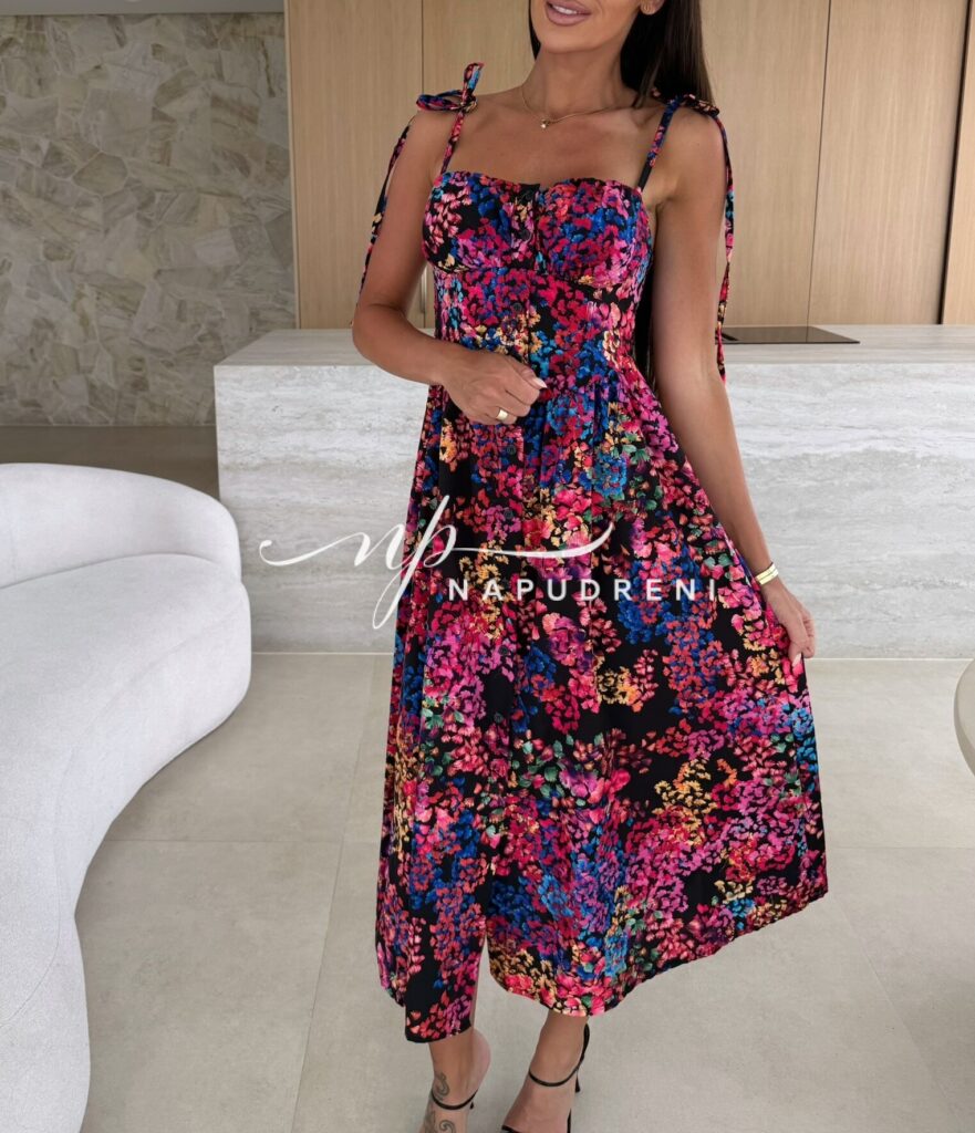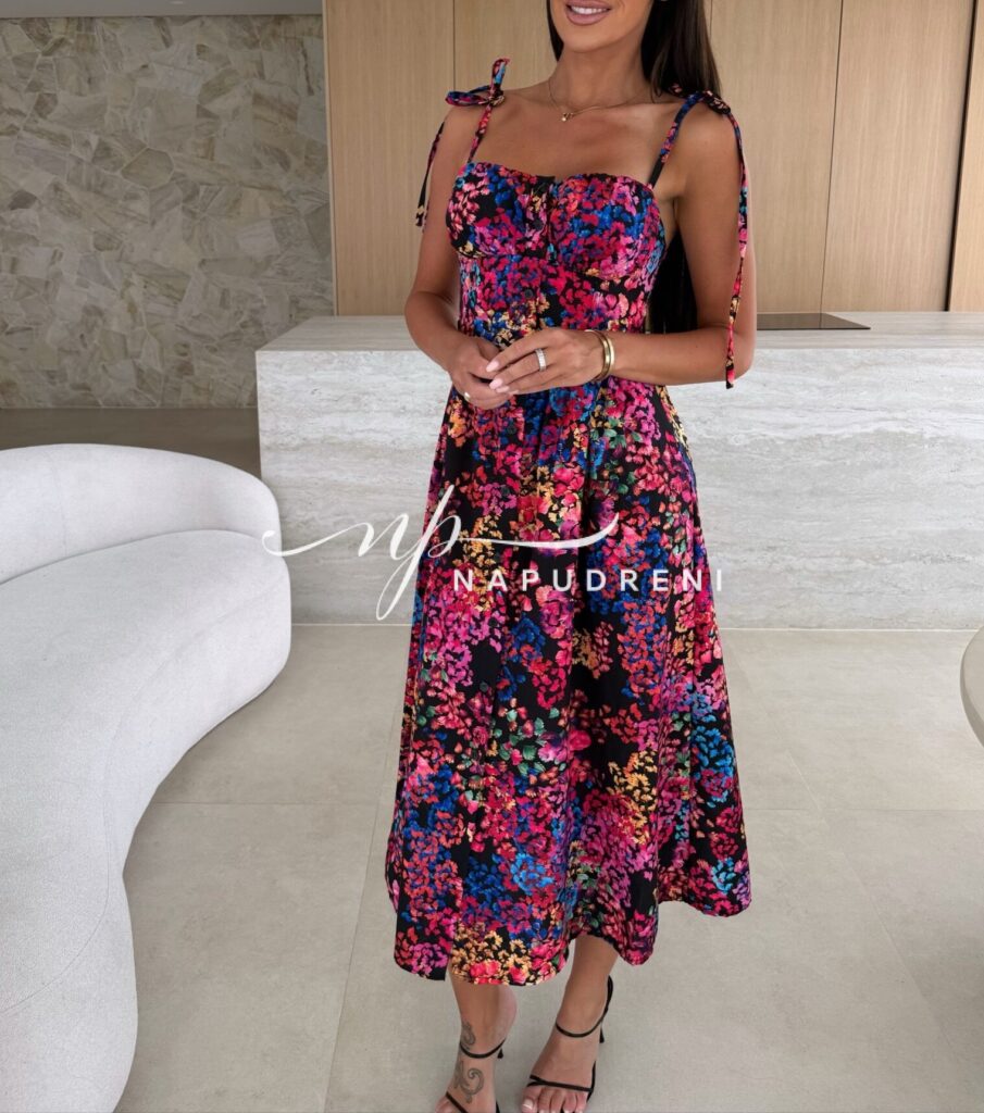 • Дълга рокля с презрамки ''BORISSA'' с флорален принт в ярки цветове - код G9269
