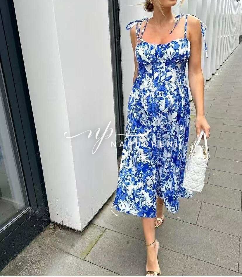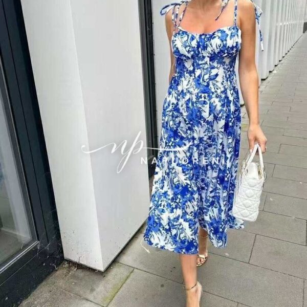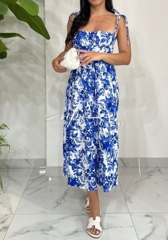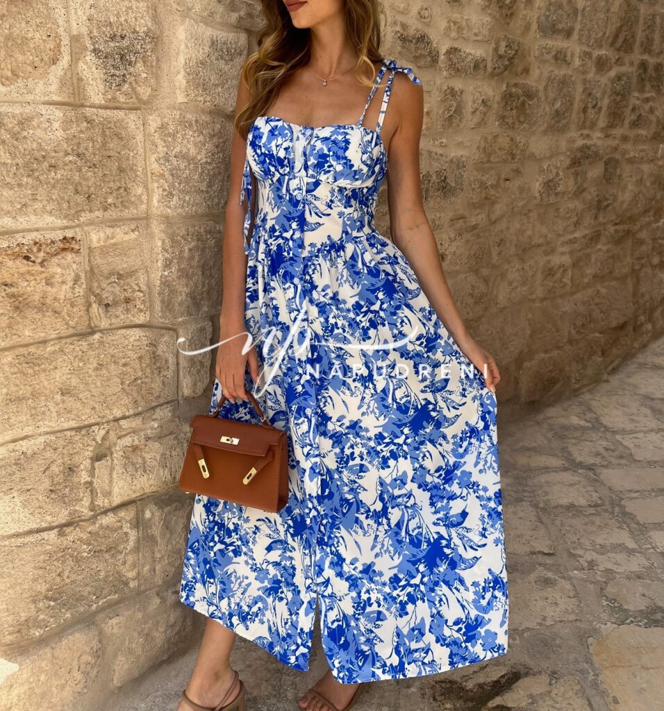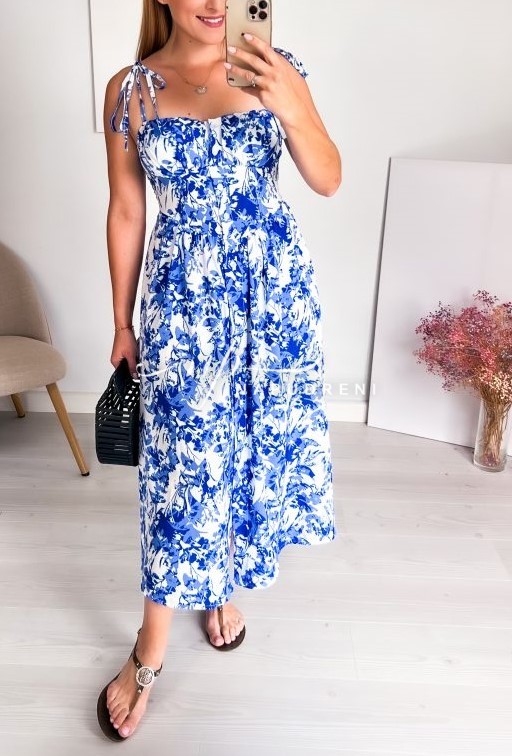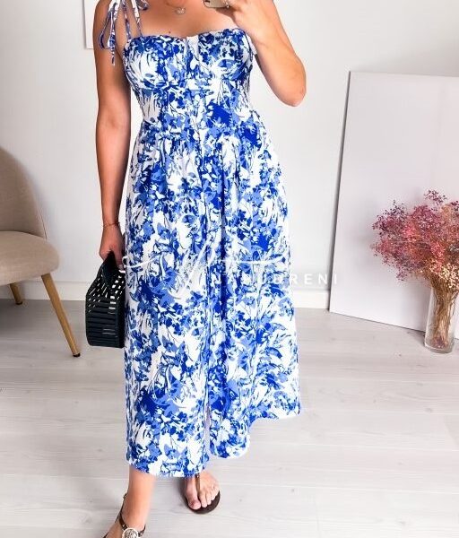Дълга рокля с презрамки “BORISSA“ в тъмносин цвят с цветя – код BL9567