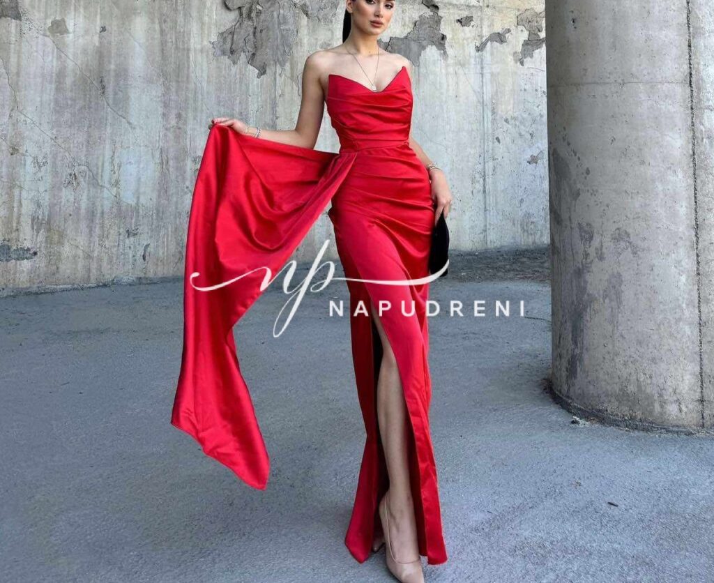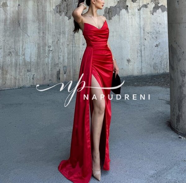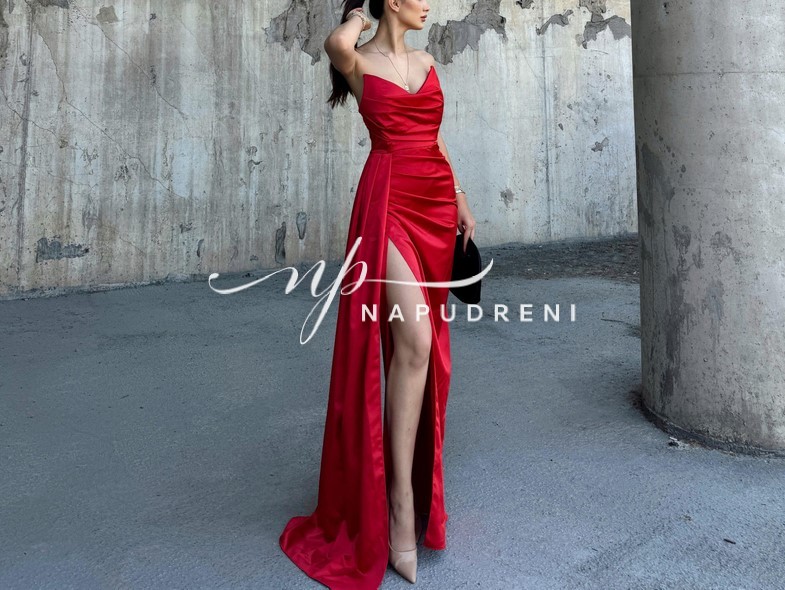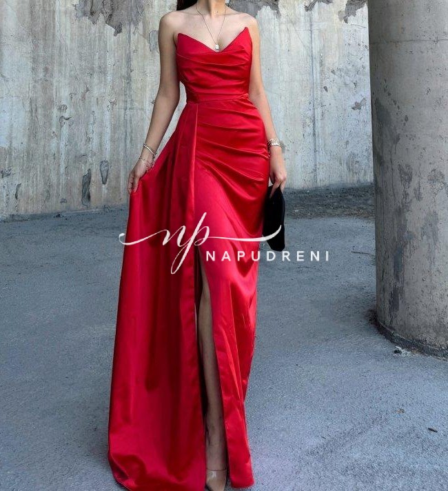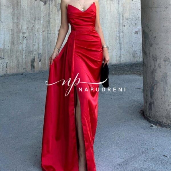 Дълга рокля сатен „Aristella“ в червен цвят – код 8009