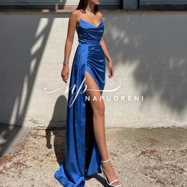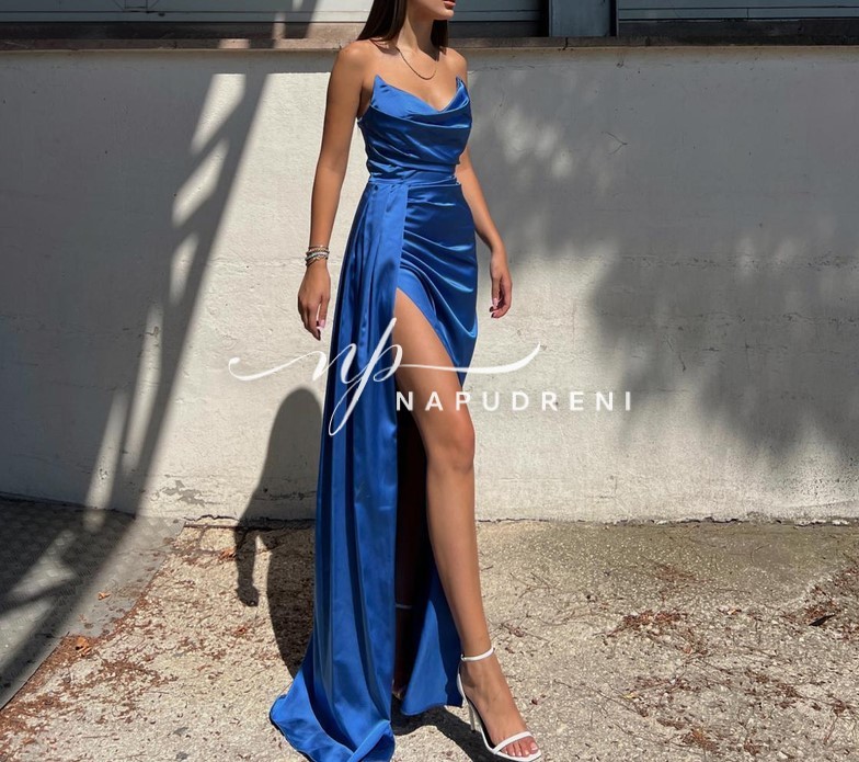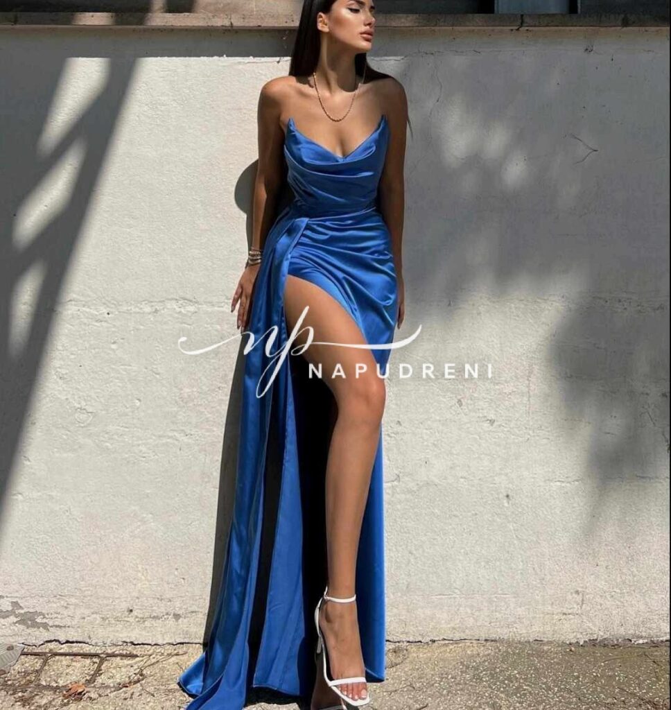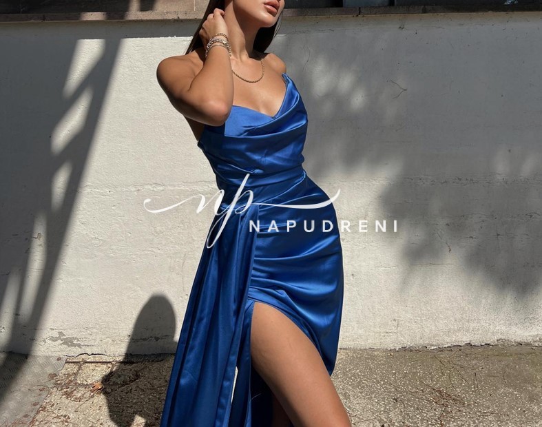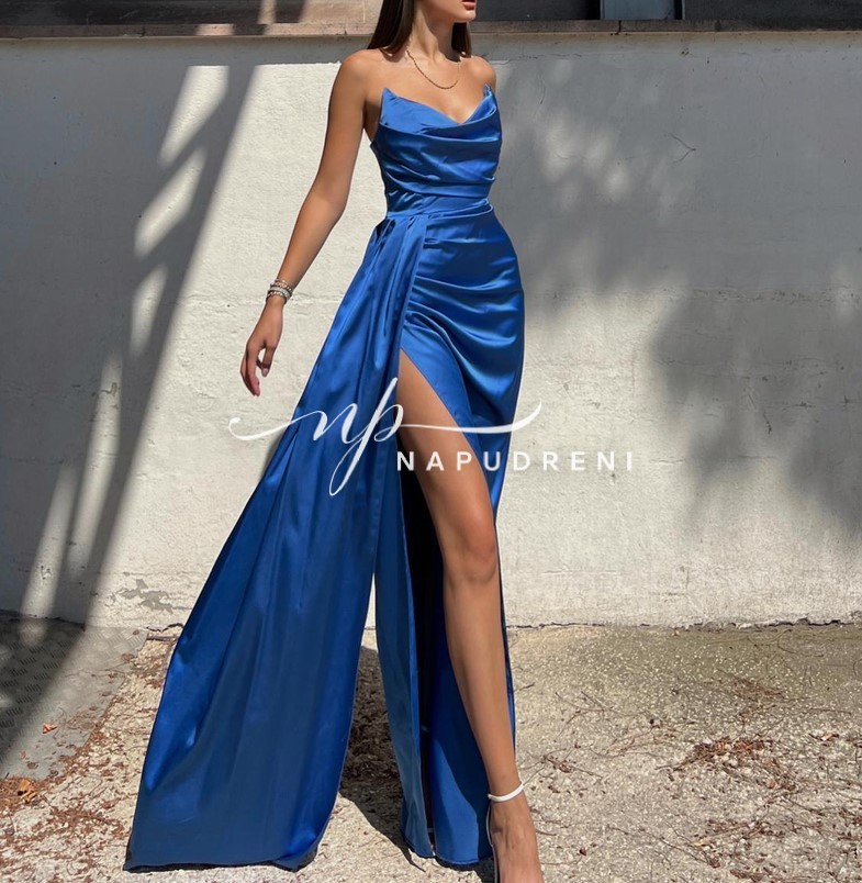Дълга рокля сатен „Aristella“ в син цвят – код 8012