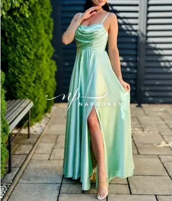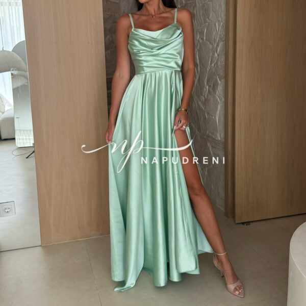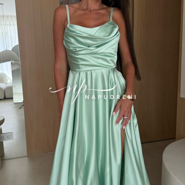 Дълга сатенена рокля „Elizabeth“ в цвят мента – код G9267