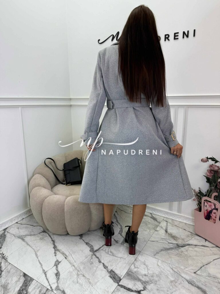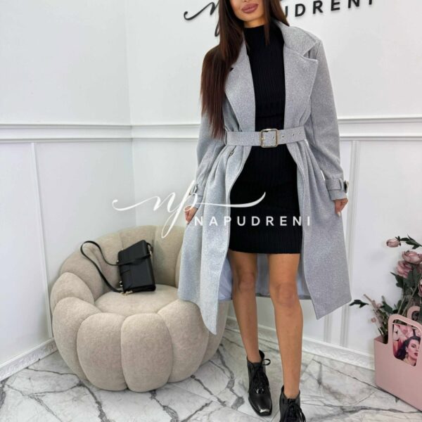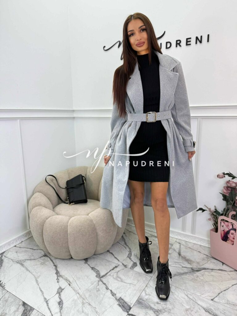 Дълго палто “PAOLINA“ с колан в сив цвят – код BL9967