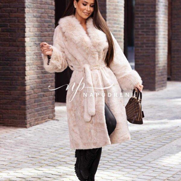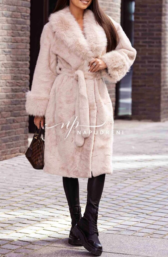 Дълго палто с колан “Nordic Glow“ в бежов цвят – код G10047