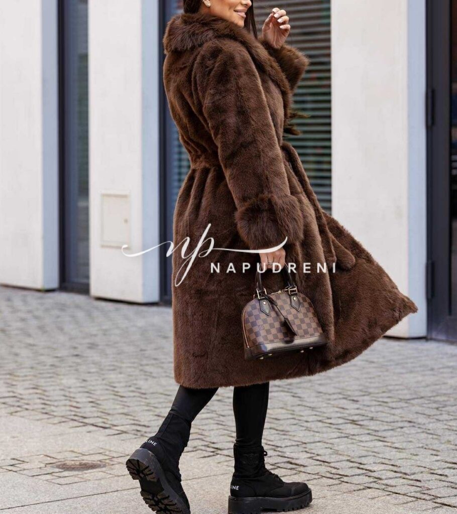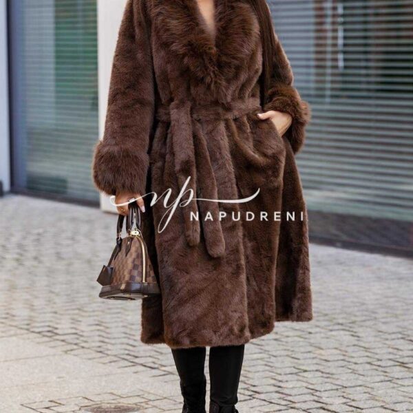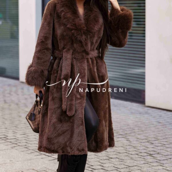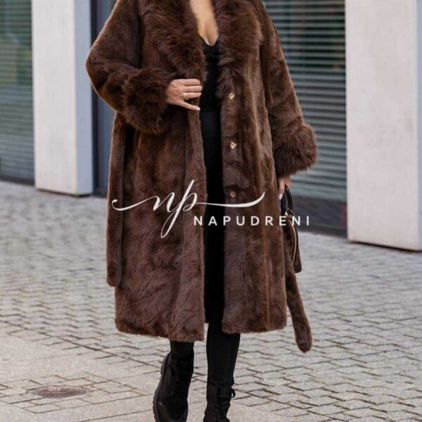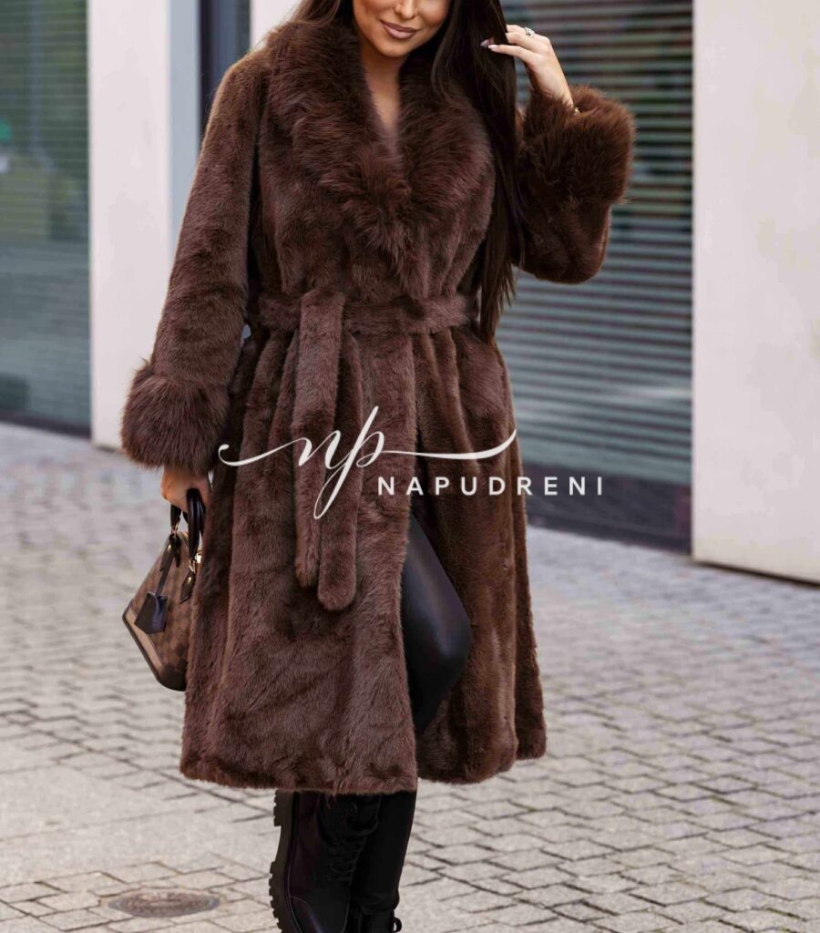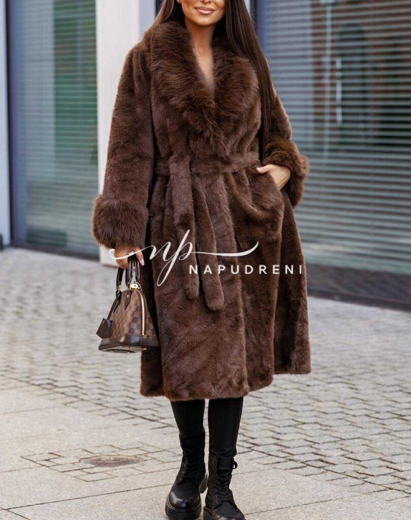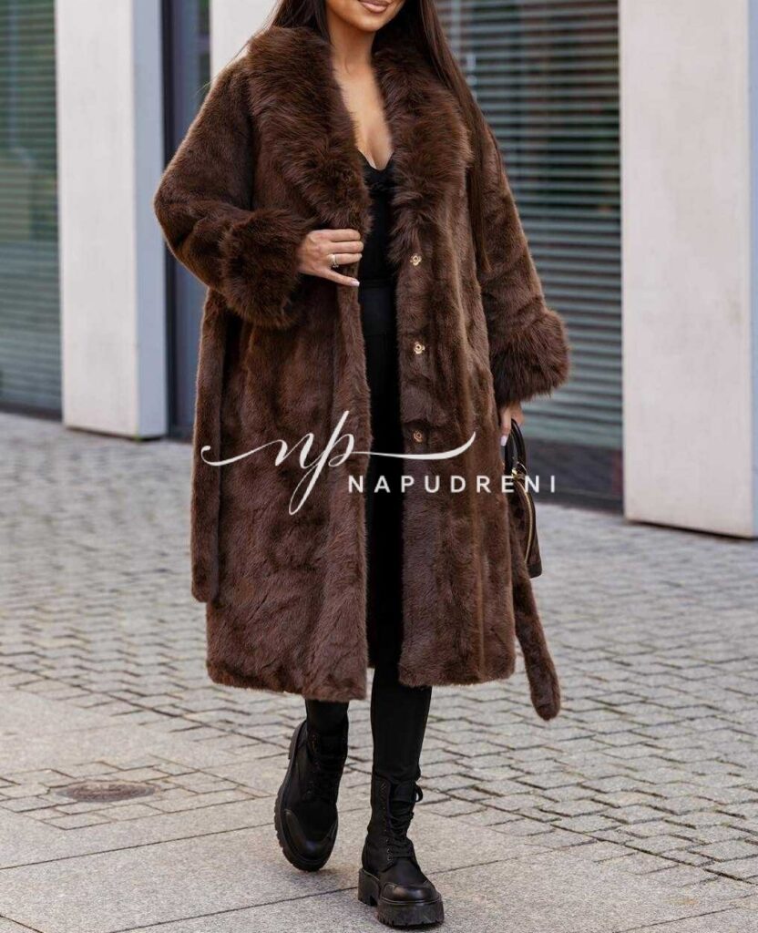 Дълго палто с колан “Nordic Glow“ в кафяв цвят – код G10048
