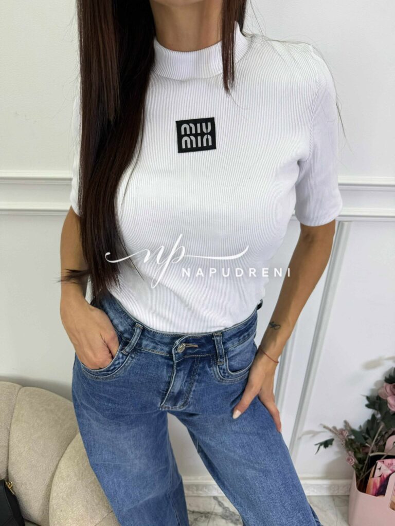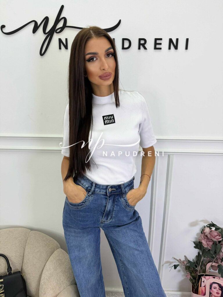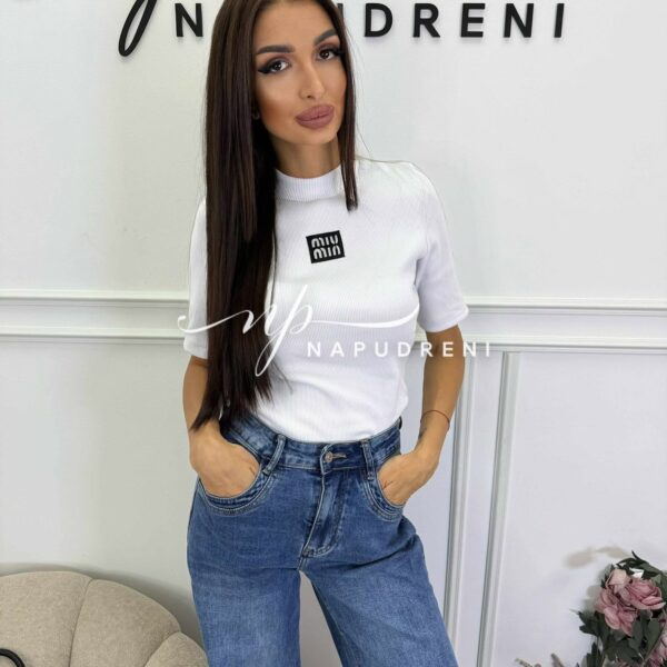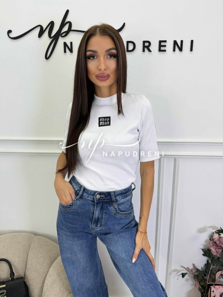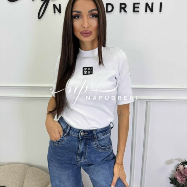 Дамска блуза рипс “MIU“ в бял цвят – код BK10017