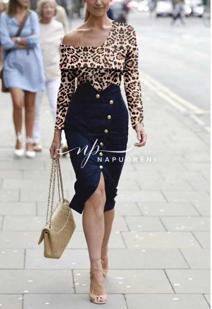 Дамска блуза с паднало рамо и животински принт в бежов цвят – код 8135