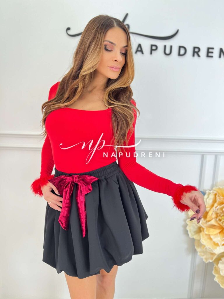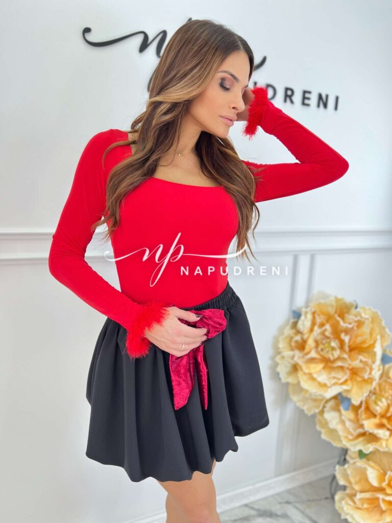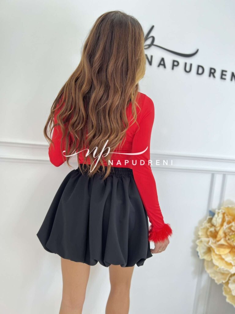 Дамска блуза с пухчета на ръкава в червен цвят – код 8519