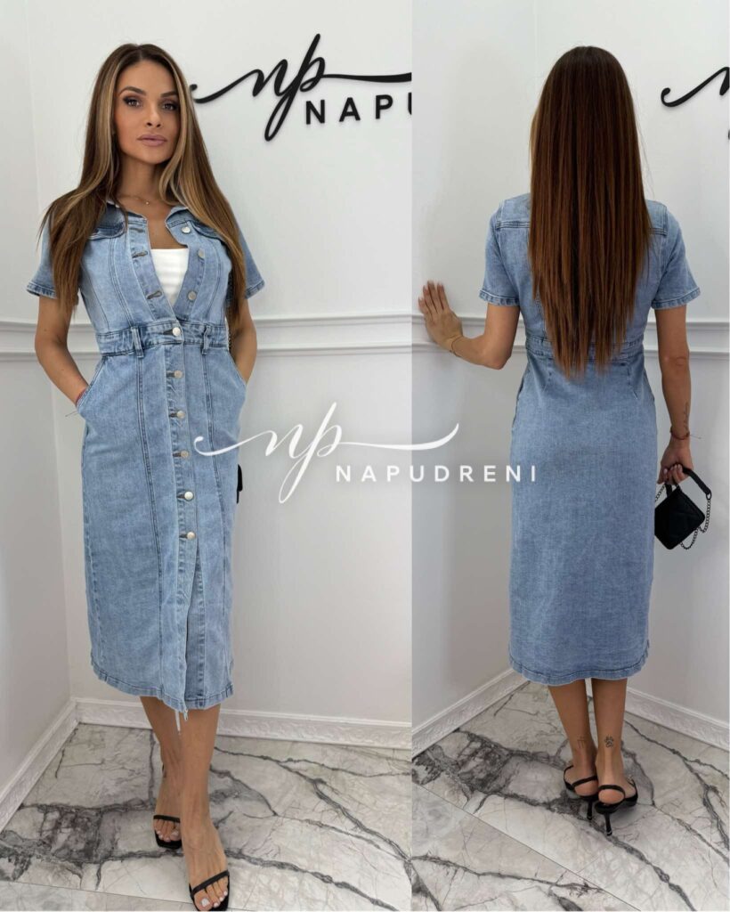 Дамска дълга дънкова рокля – код 8928