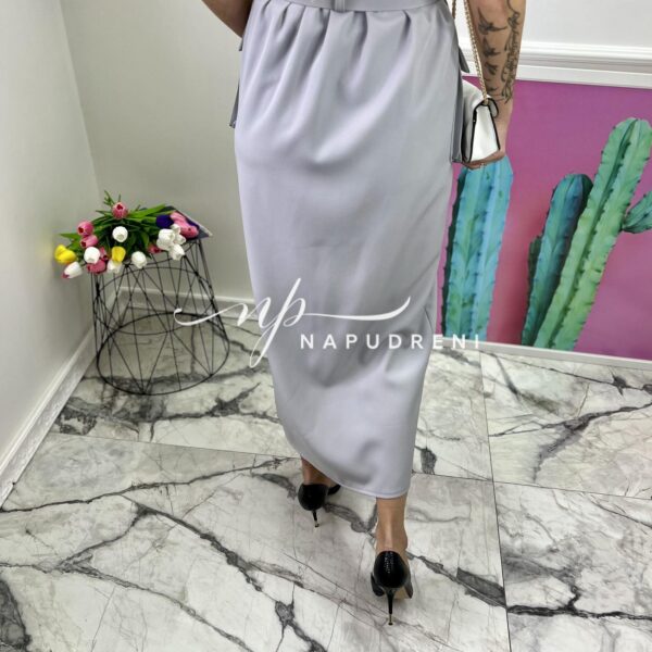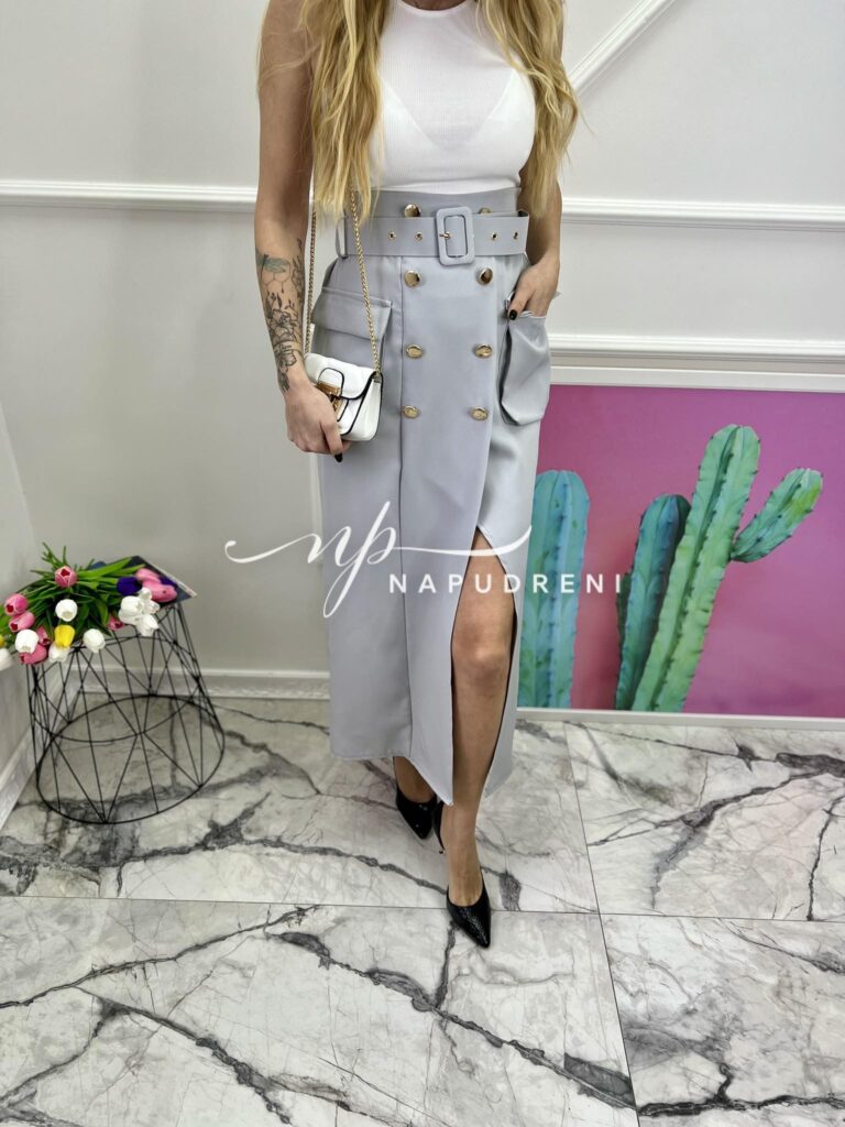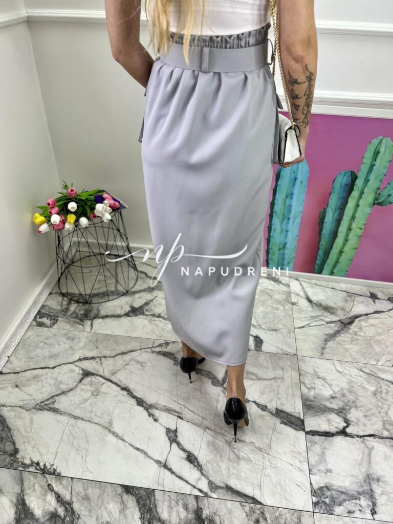 Дамска дълга пола с коланче в сив цвят – код 7003
