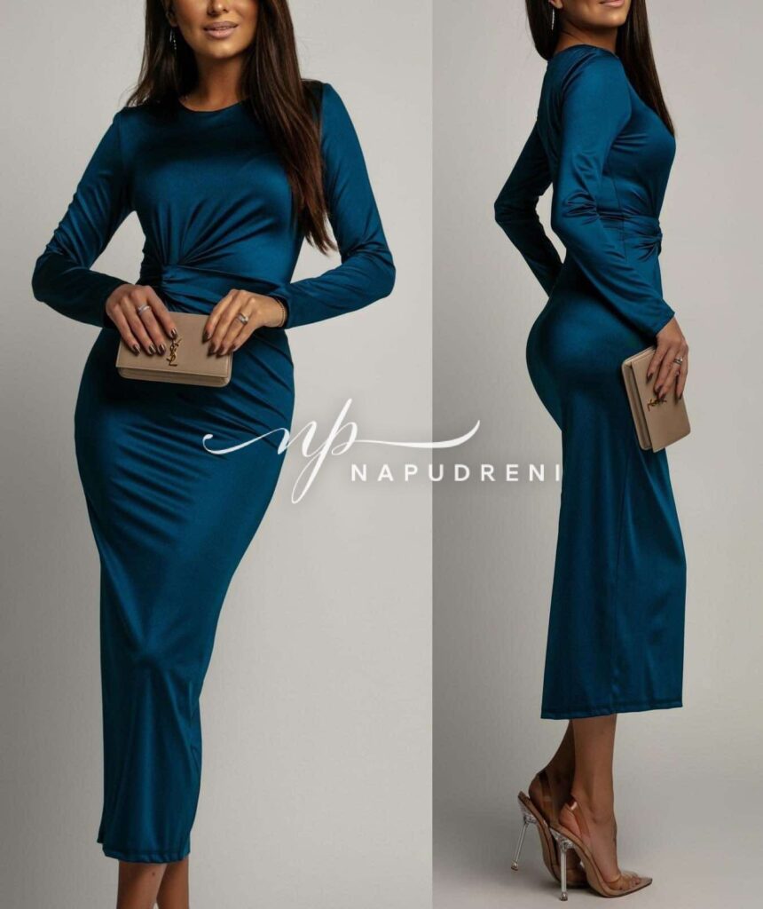 Дамска дълга рокля “MADISON“ в син цвят – код 8113