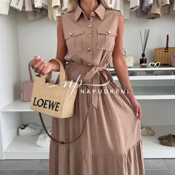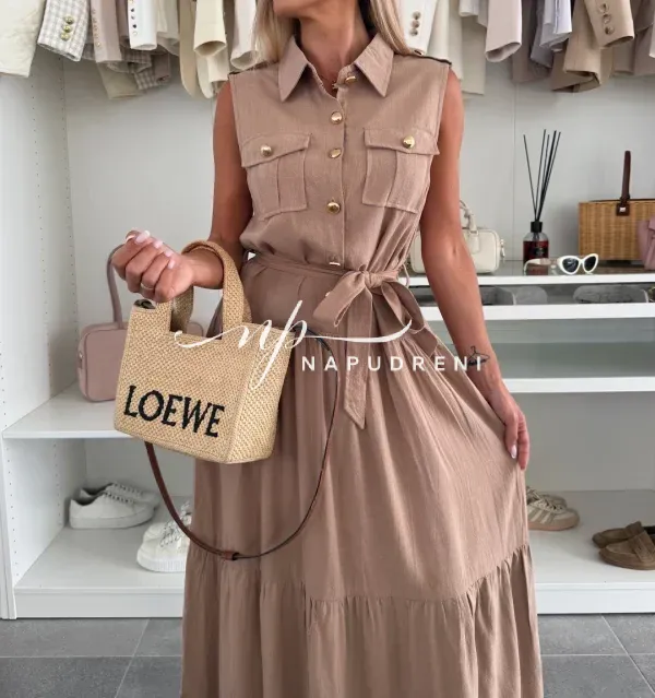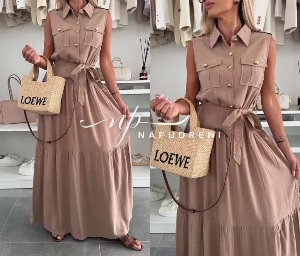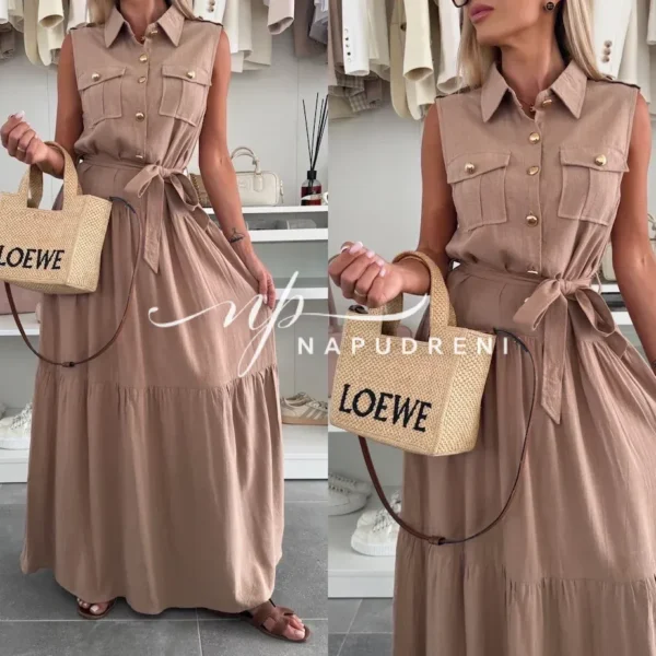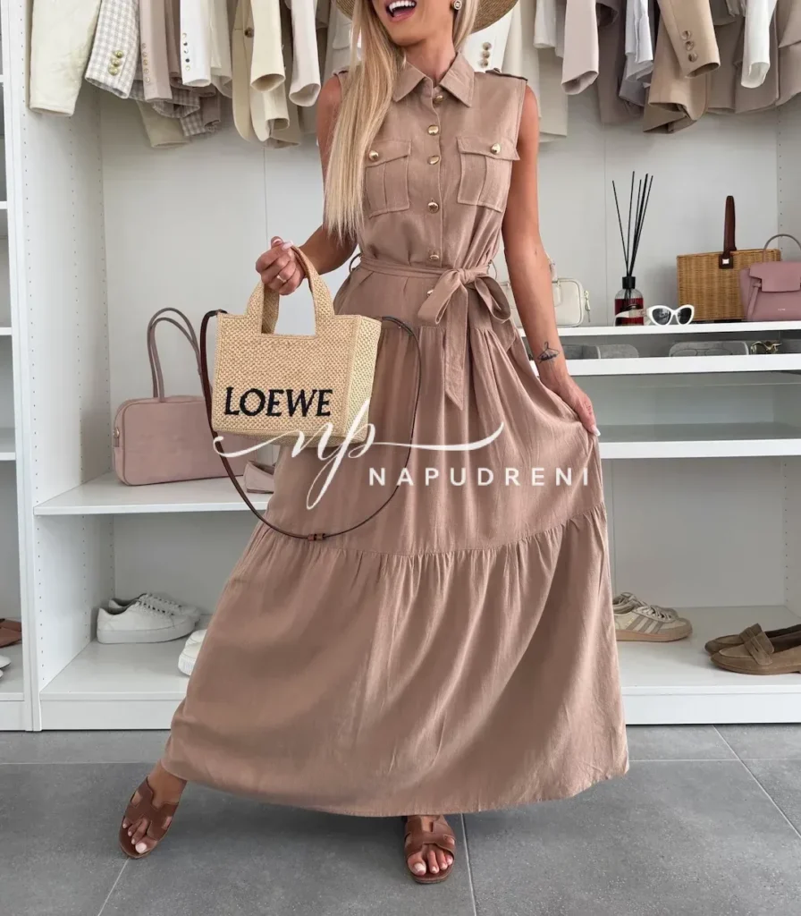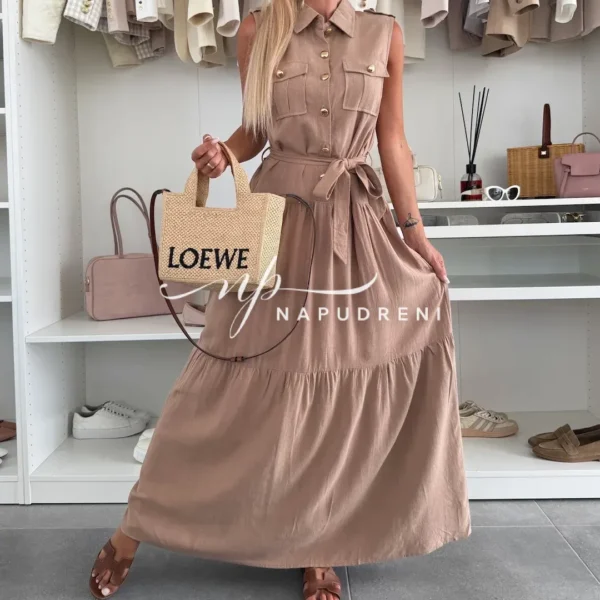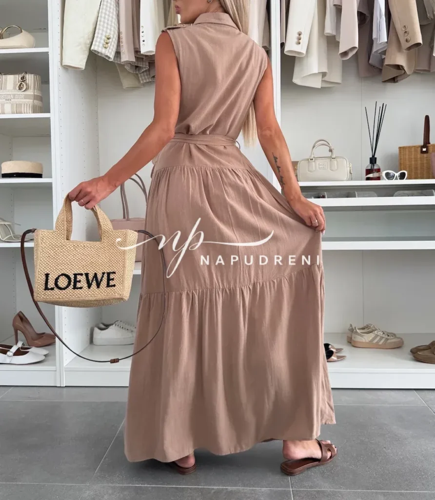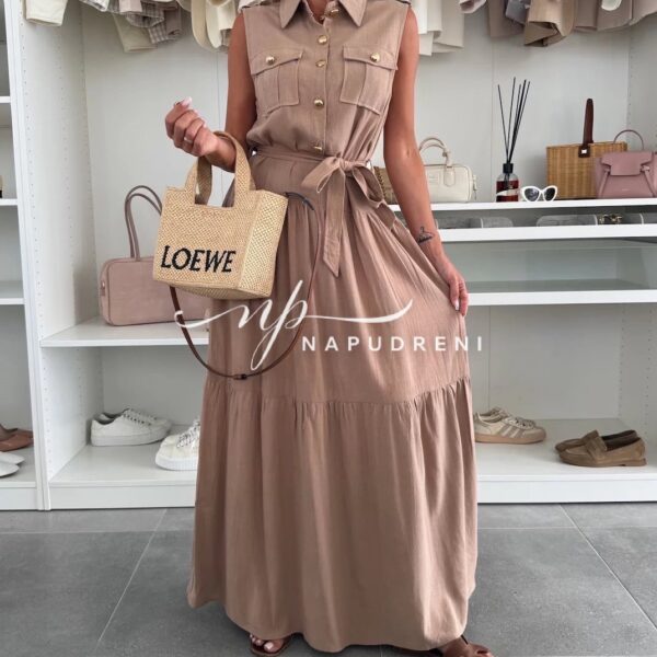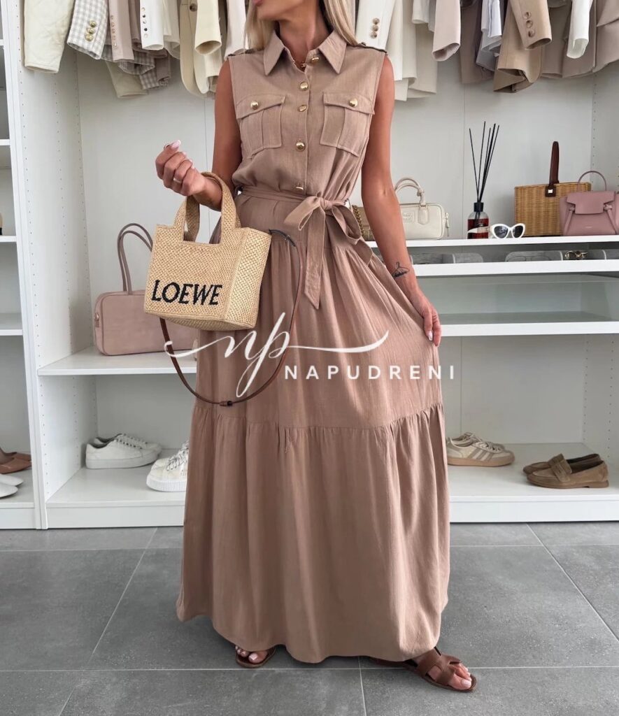 Дамска дълга рокля “NELLIE“ в кафяв цвят – код G9230