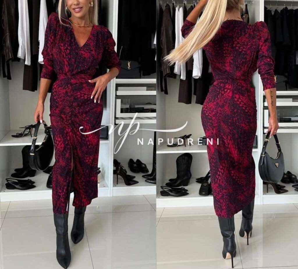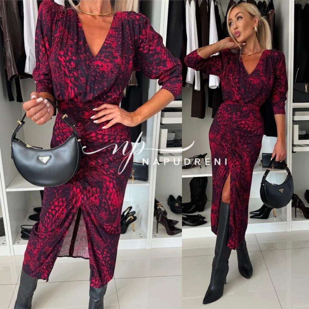 Дамска дълга рокля “PAOLA“ в червен цвят – код 8036