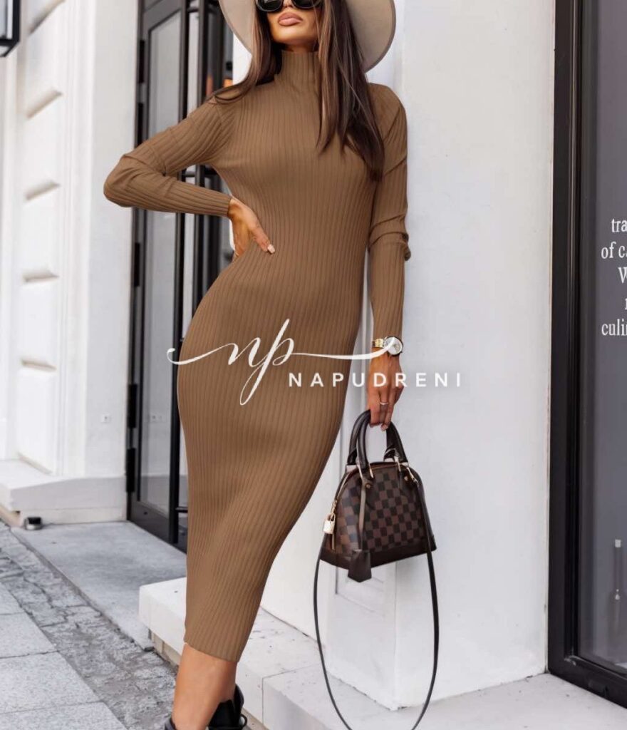 Дамска дълга рокля “SHARLOT“ в цвят камел – код 7986