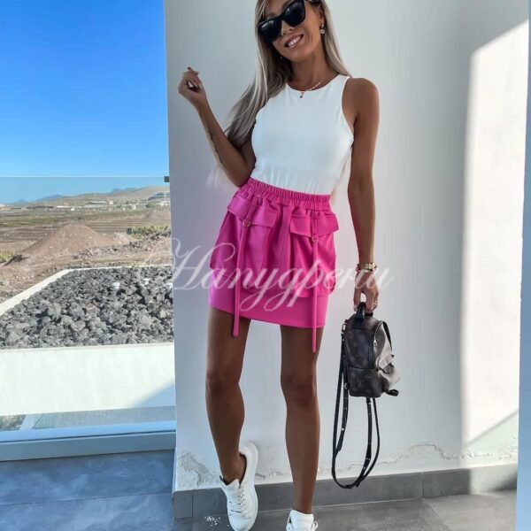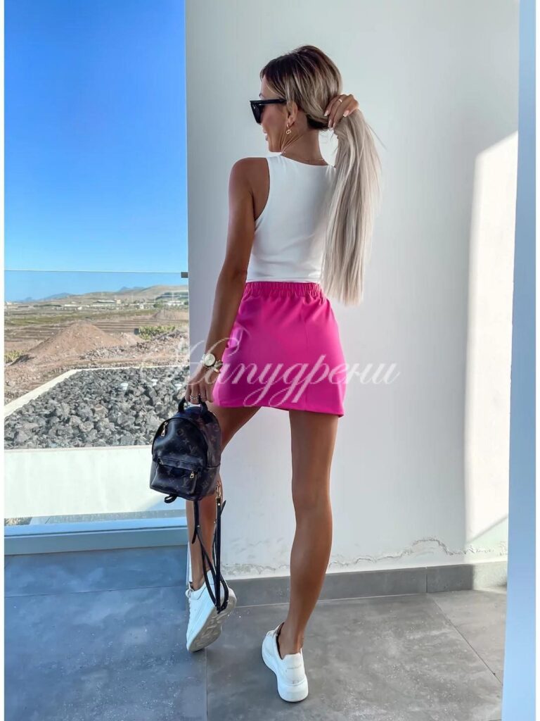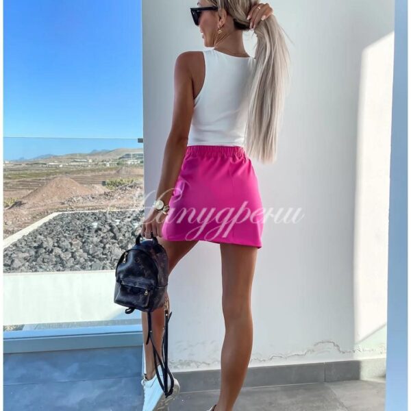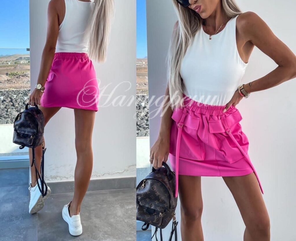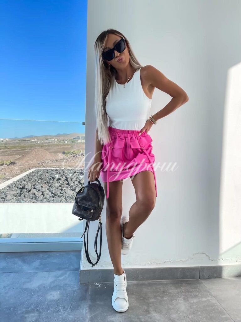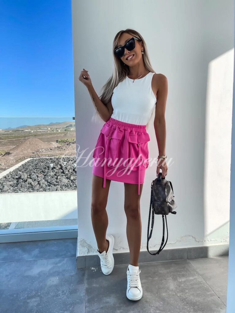 Дамска ефектна пола с джобчета в цикламено – код 5113