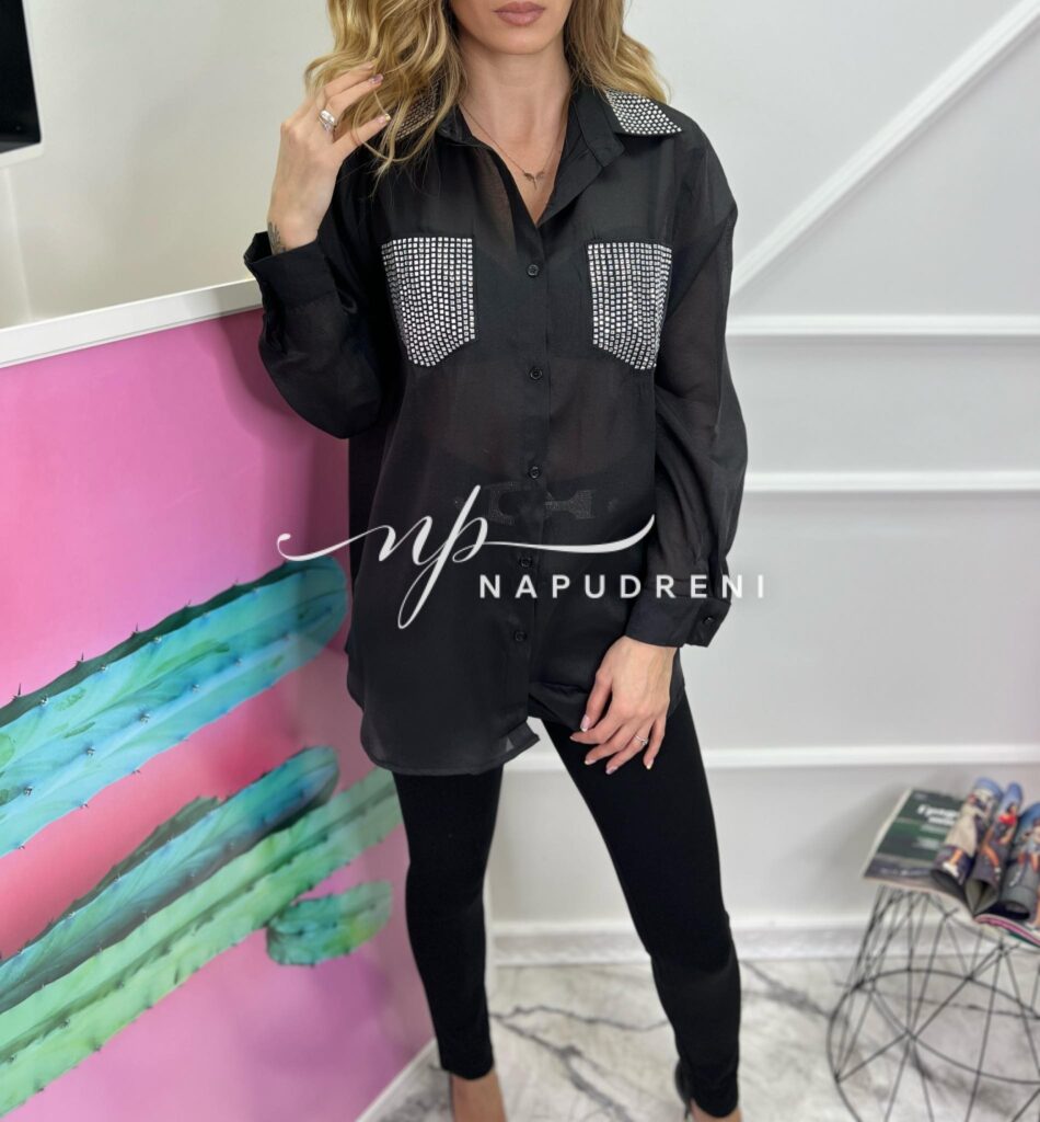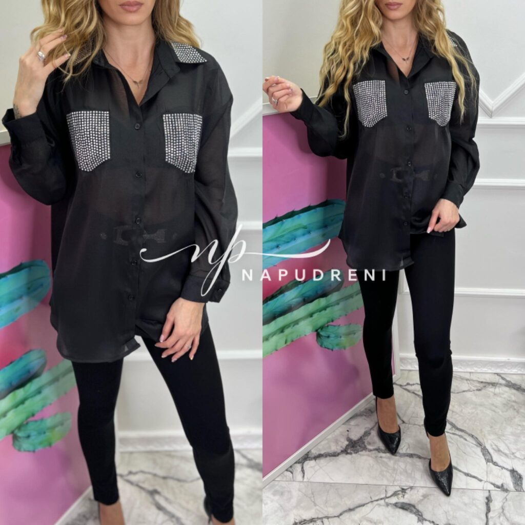 Home » Магазин » Дамска ефирна риза в черен цвят – код 6727