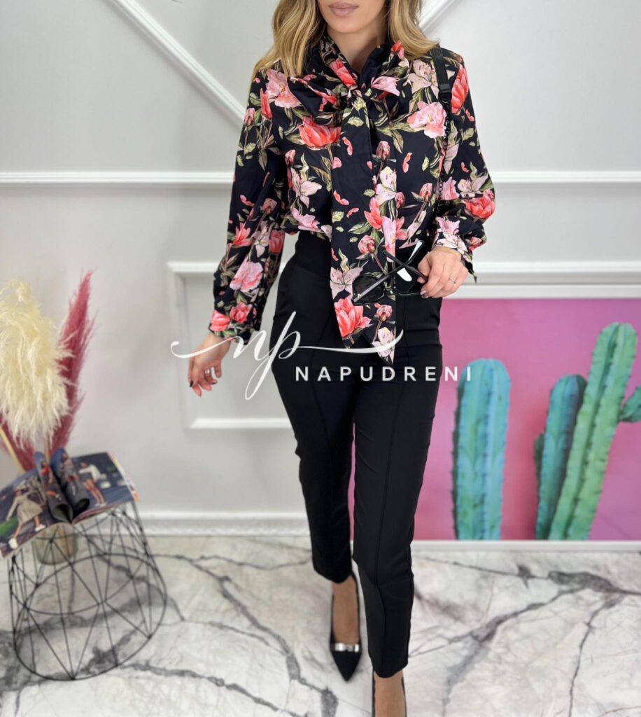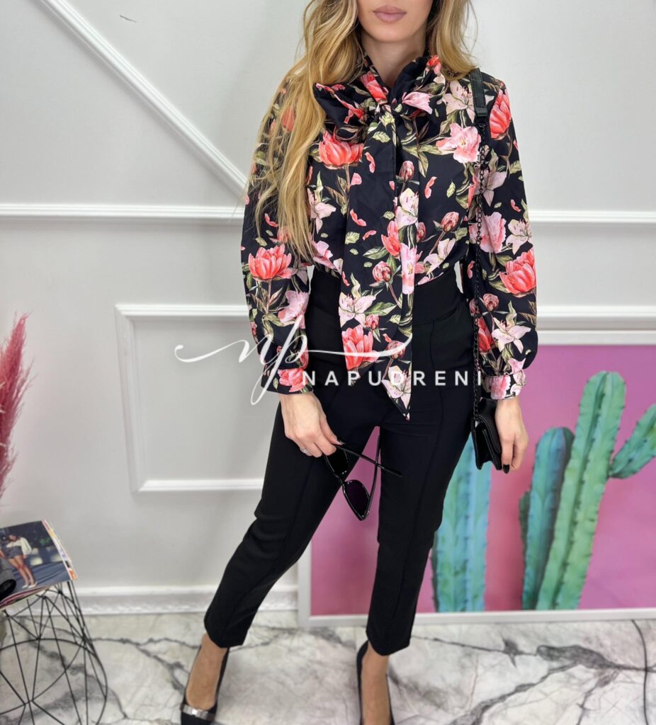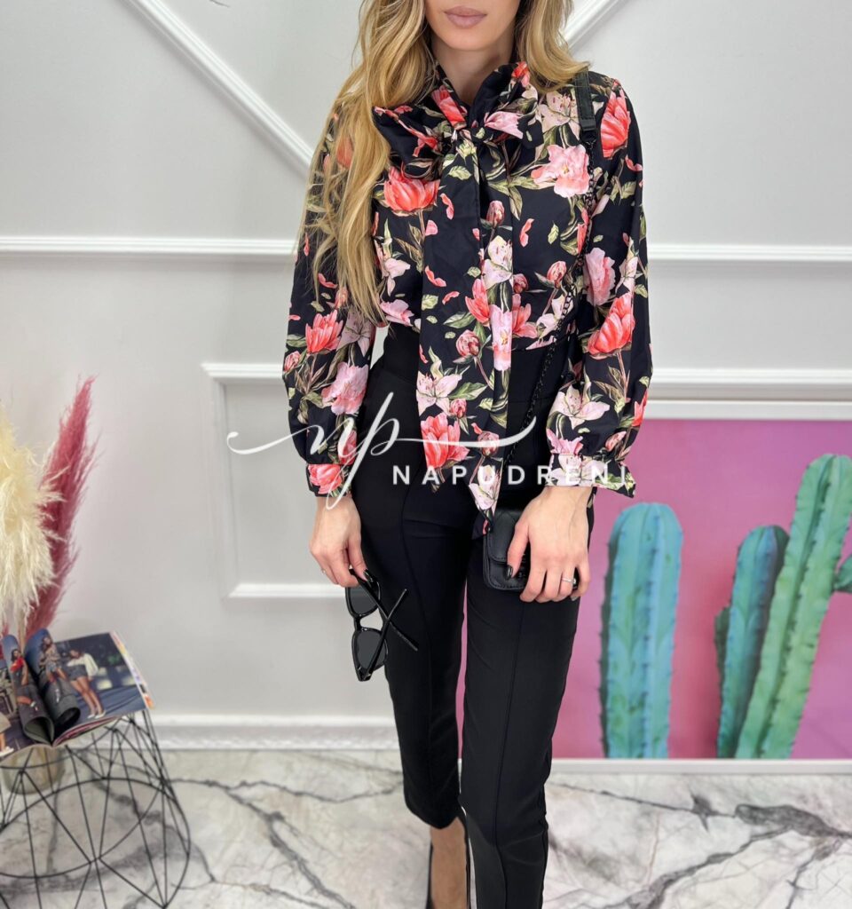 Home » Магазин » Дамска флорална риза с връзка в бял цвят -код 6949