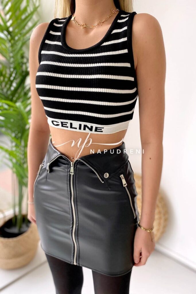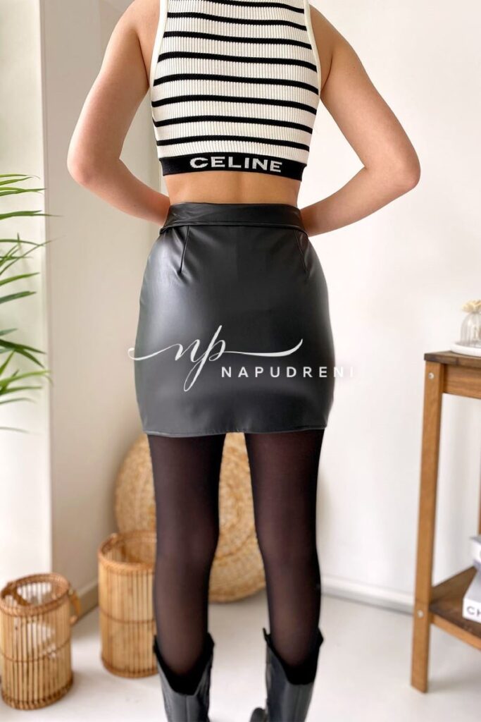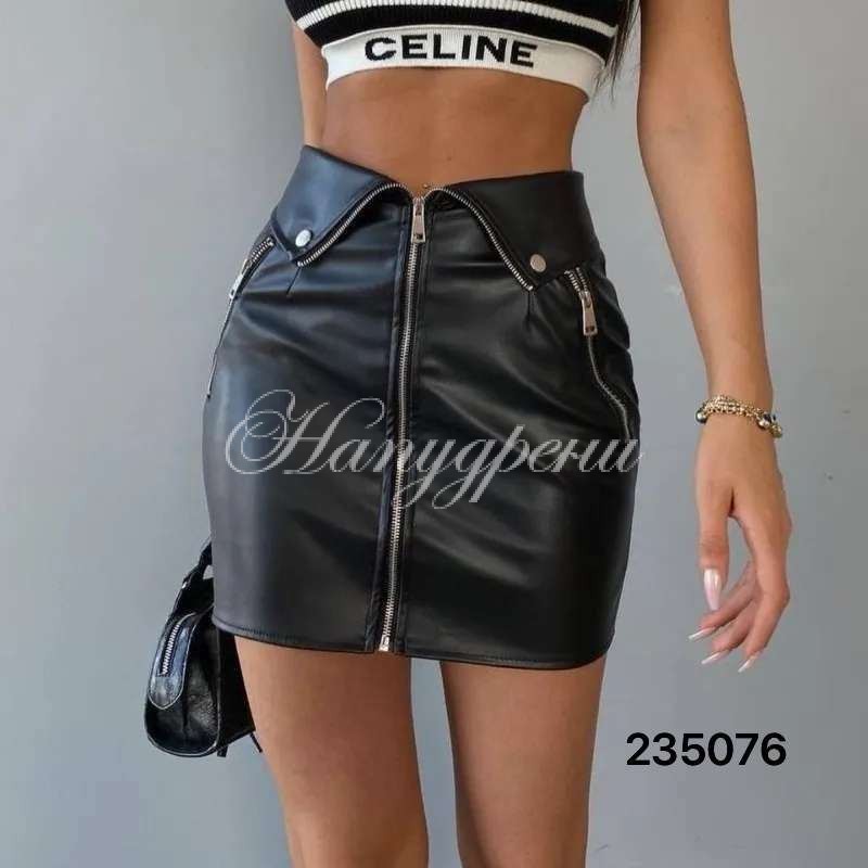 Дамска кожена пола с екстревагантна кройка и цип – код 6121