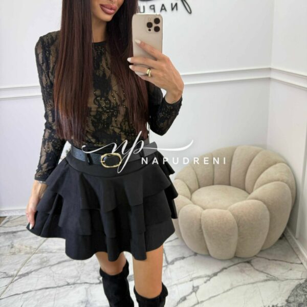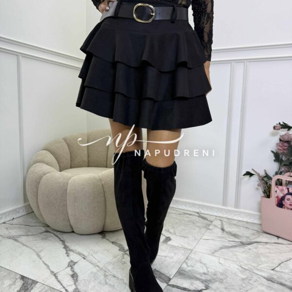 Дамска мини пола “Ruffled“ с колан в черен цвят – код Bi9966