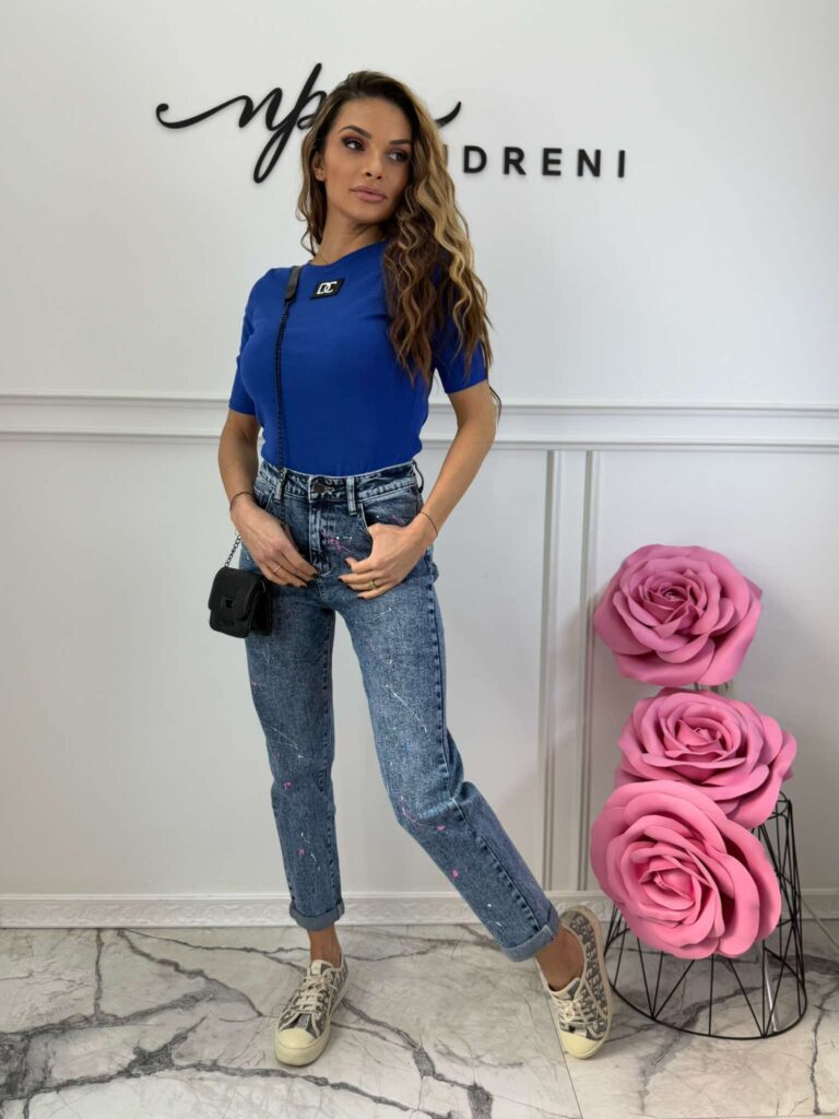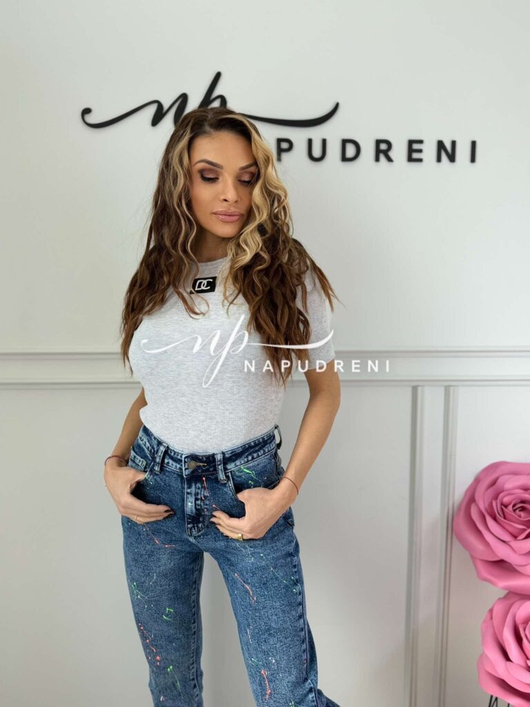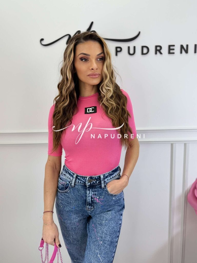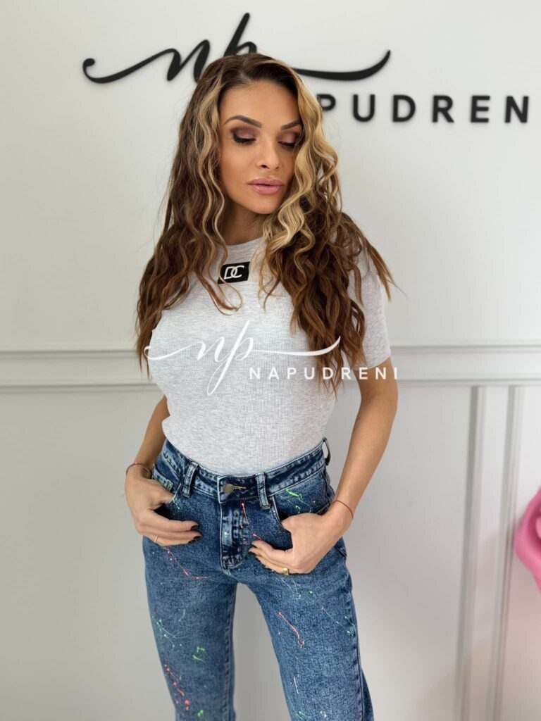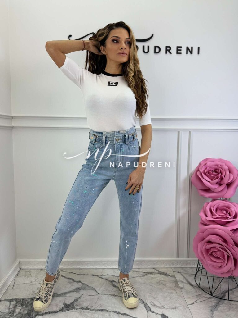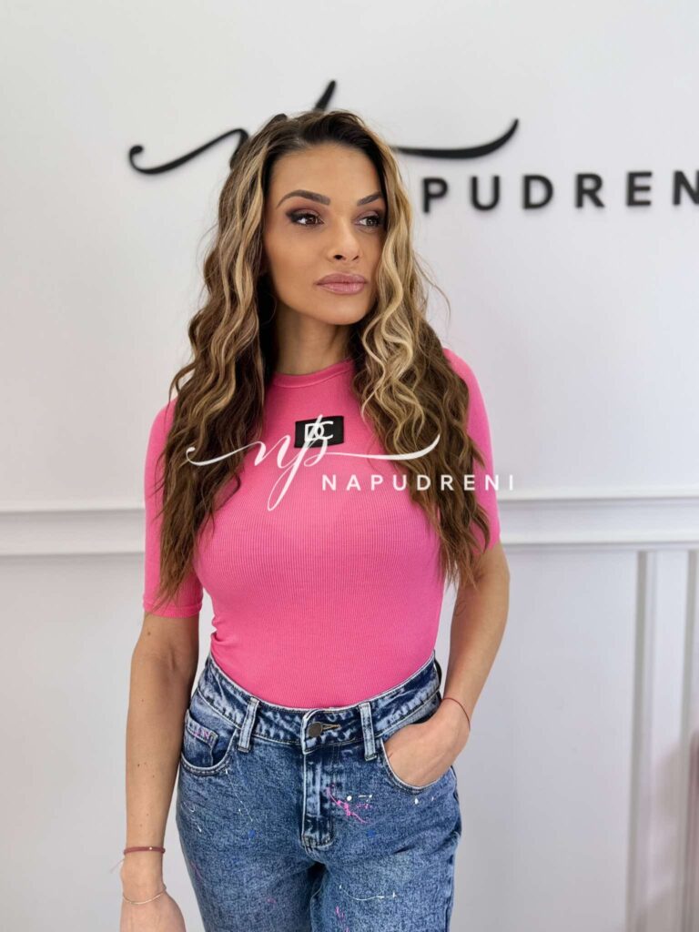 Дамска рипс тениска с къс ръкав в бял цвят – код 8846