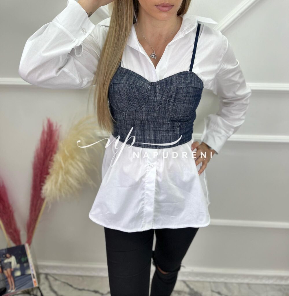 Дамска риза/бюстие 2в1 в бял цвят – код 6794