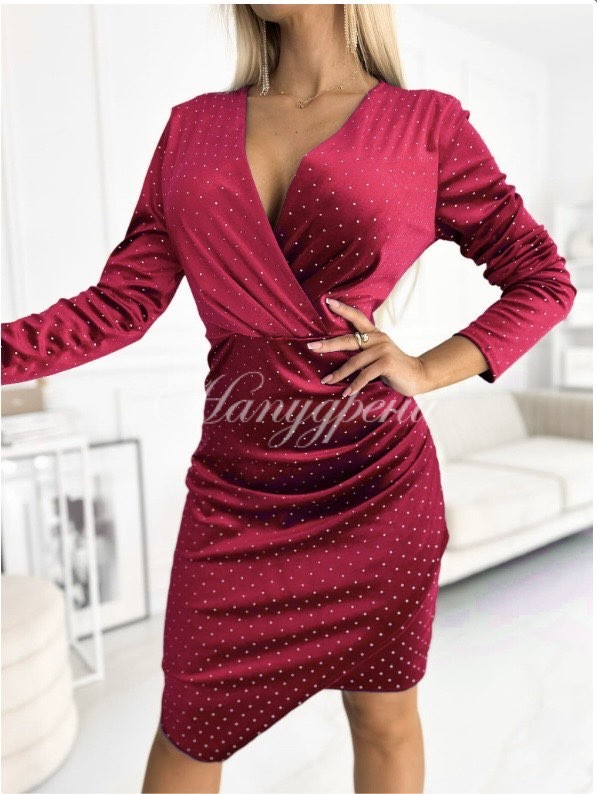 Дамска рокля „Allbena“ с маниста в червен цвят – код 6385