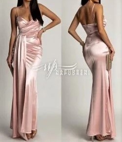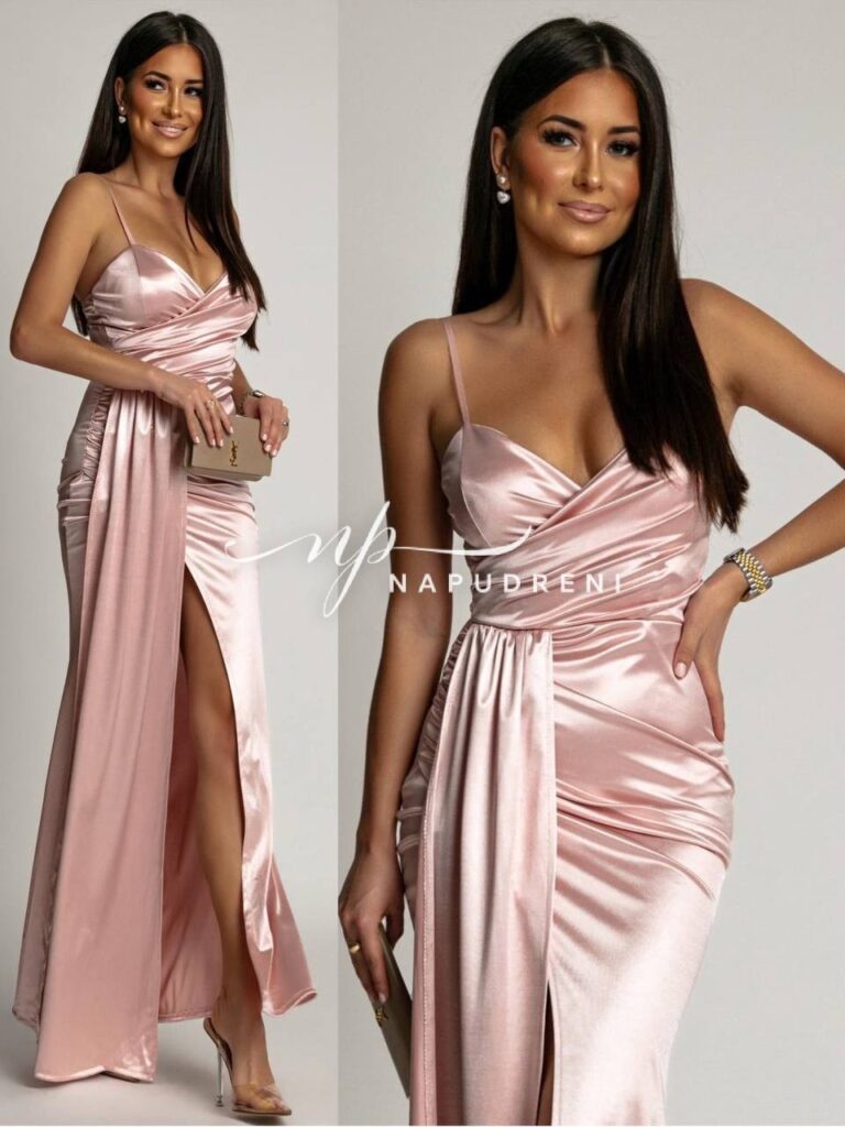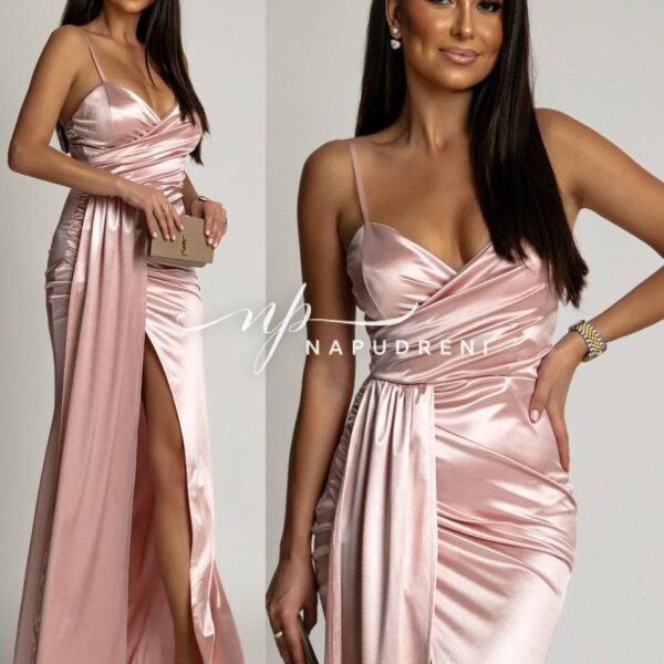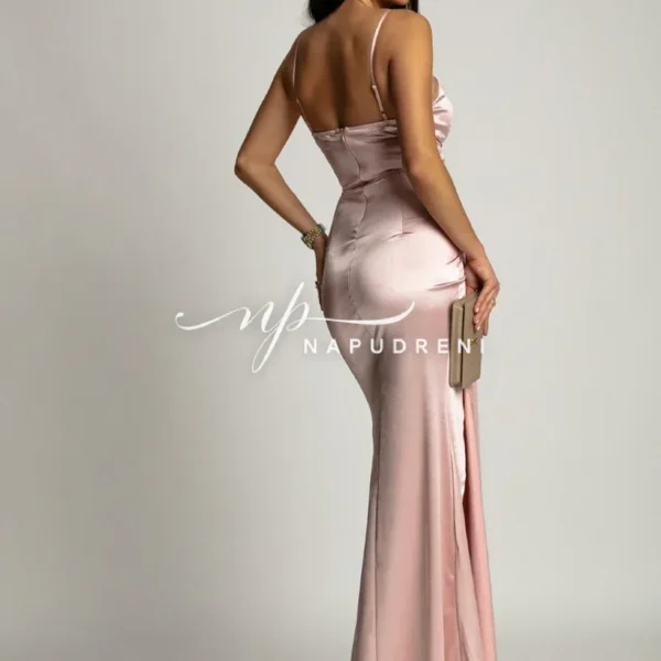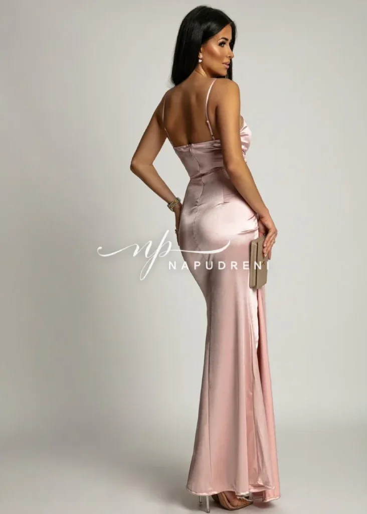 • Дамска сатенена рокля ''Tiana'' в цвят пудра - код 7824