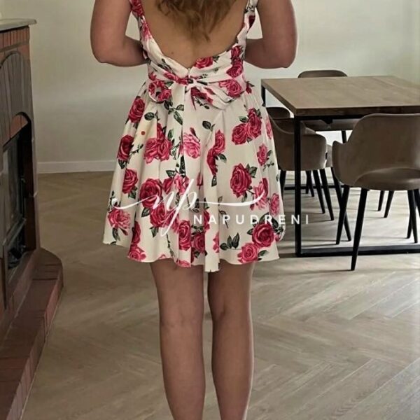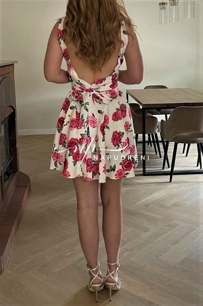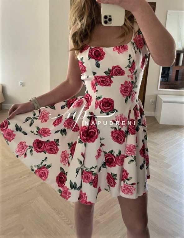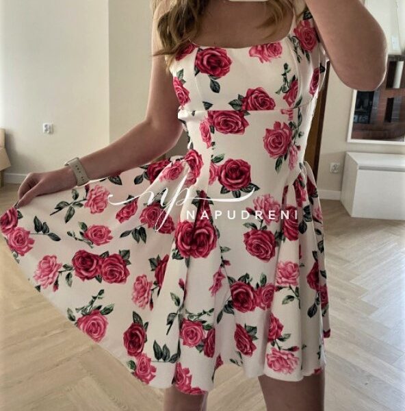 Дамска рокля “Jesy“ в бял цвят с рози – код 7179