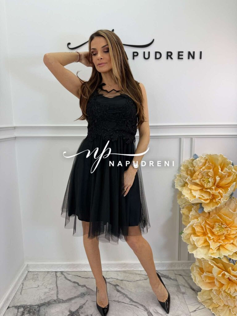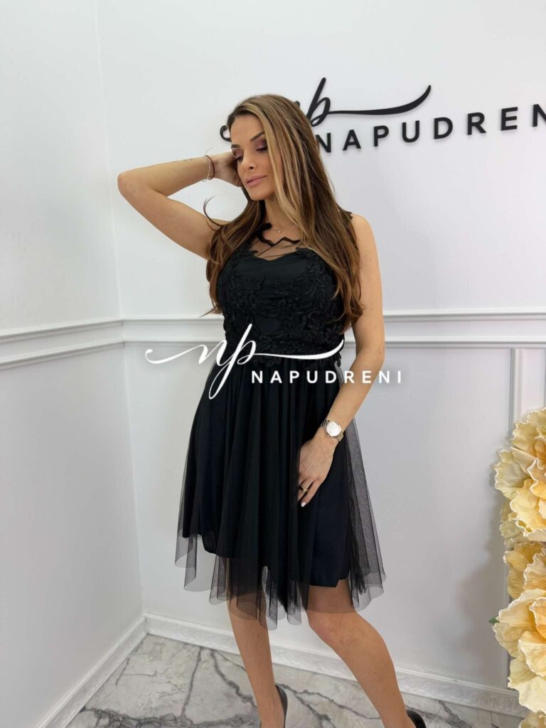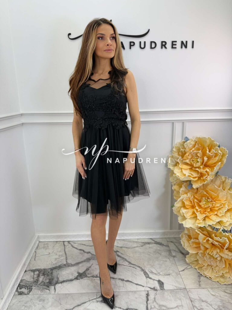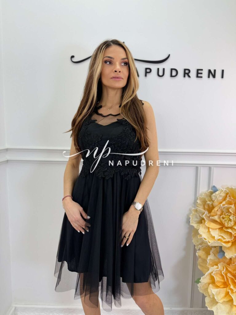 Дамска рокля с тюл “Rosalia“ в черен цвят – код 8725