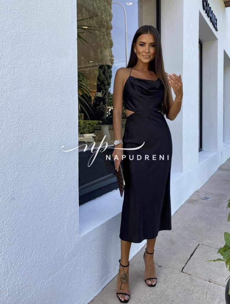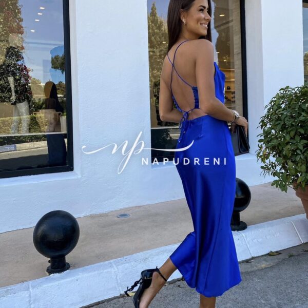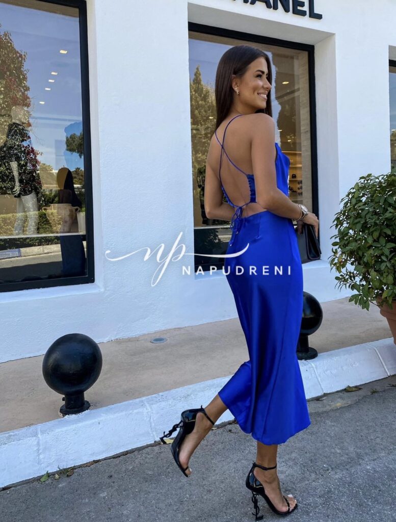 Дамска сатенена рокля “JENEVA“ в син цвят – код 7797