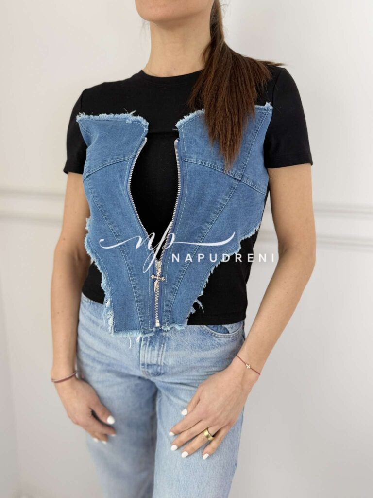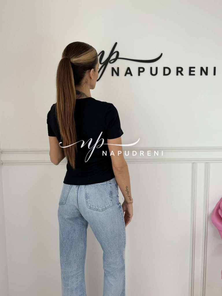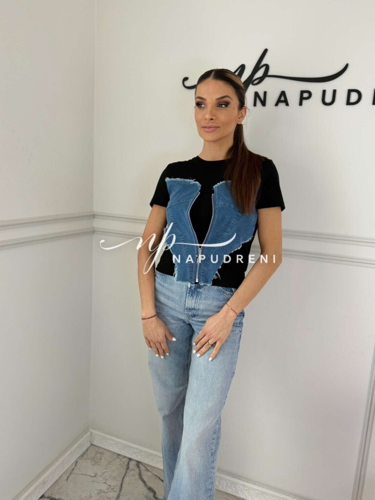 Тениска с дънково закопчаване в черен цвят – код 8819