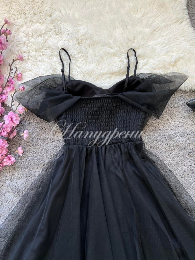 Дамска тюлена рокля в черен цвят – 2683