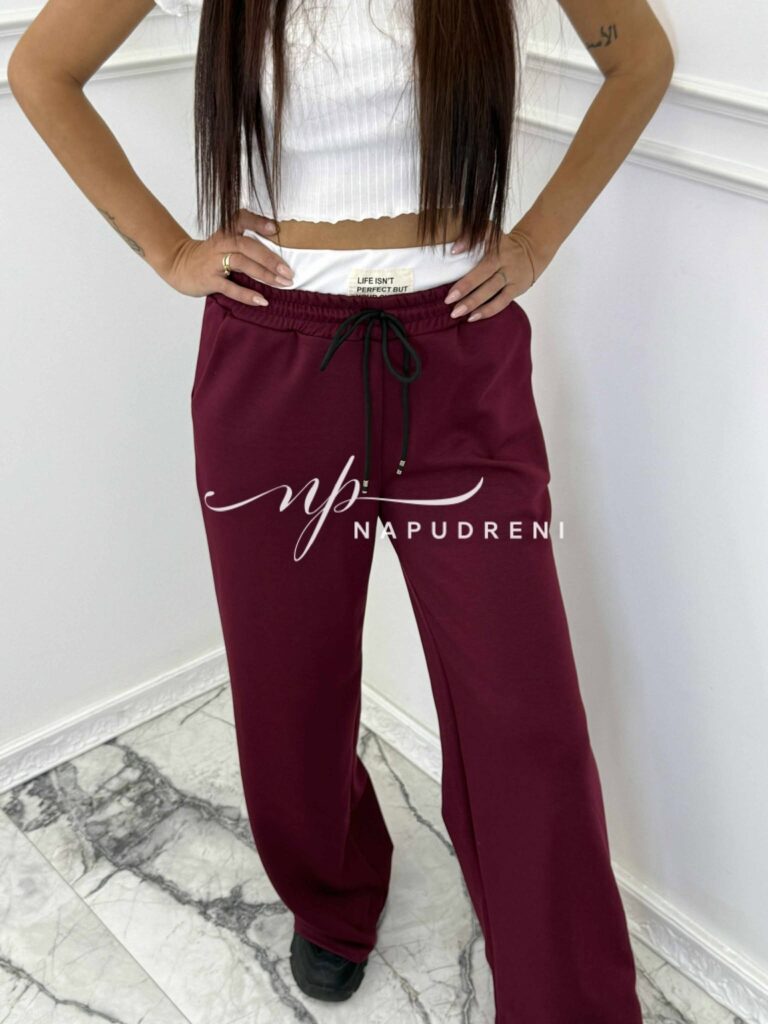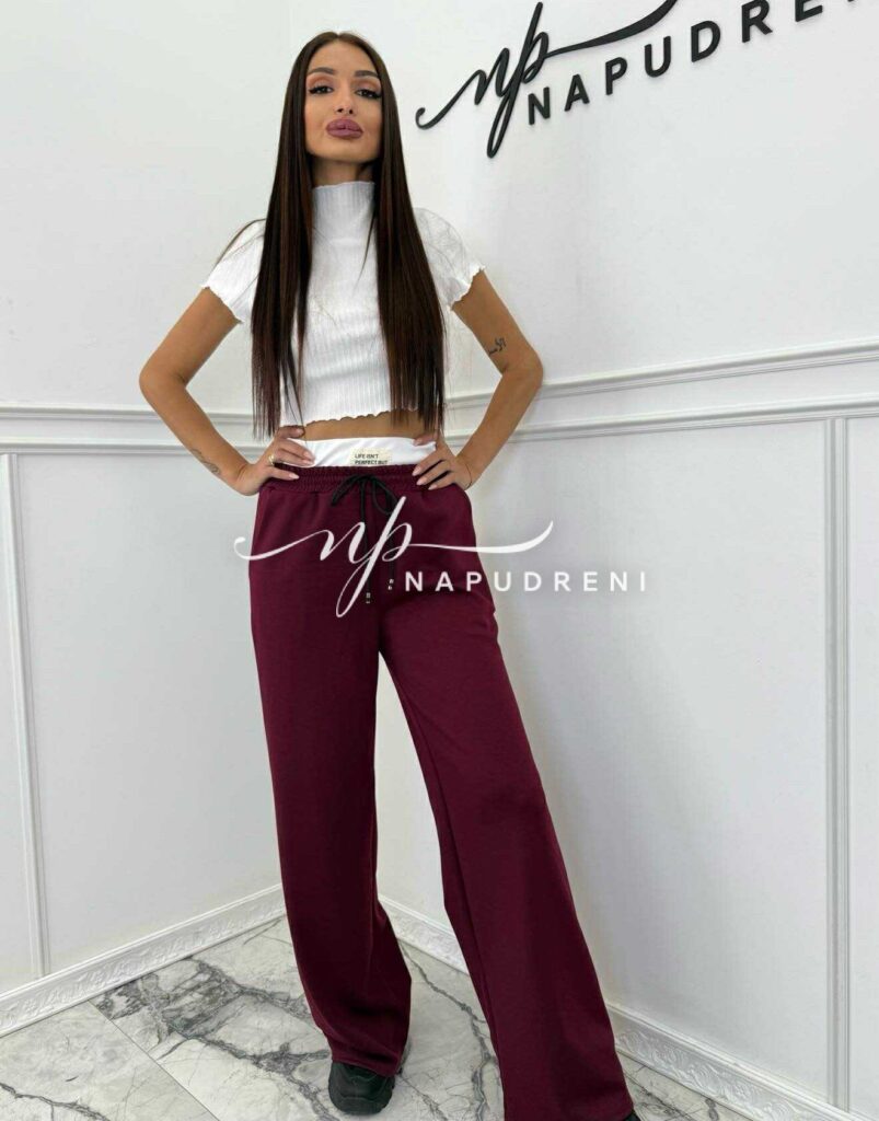 Дамски джогър с ластик в цвят бордо – код Bi9910